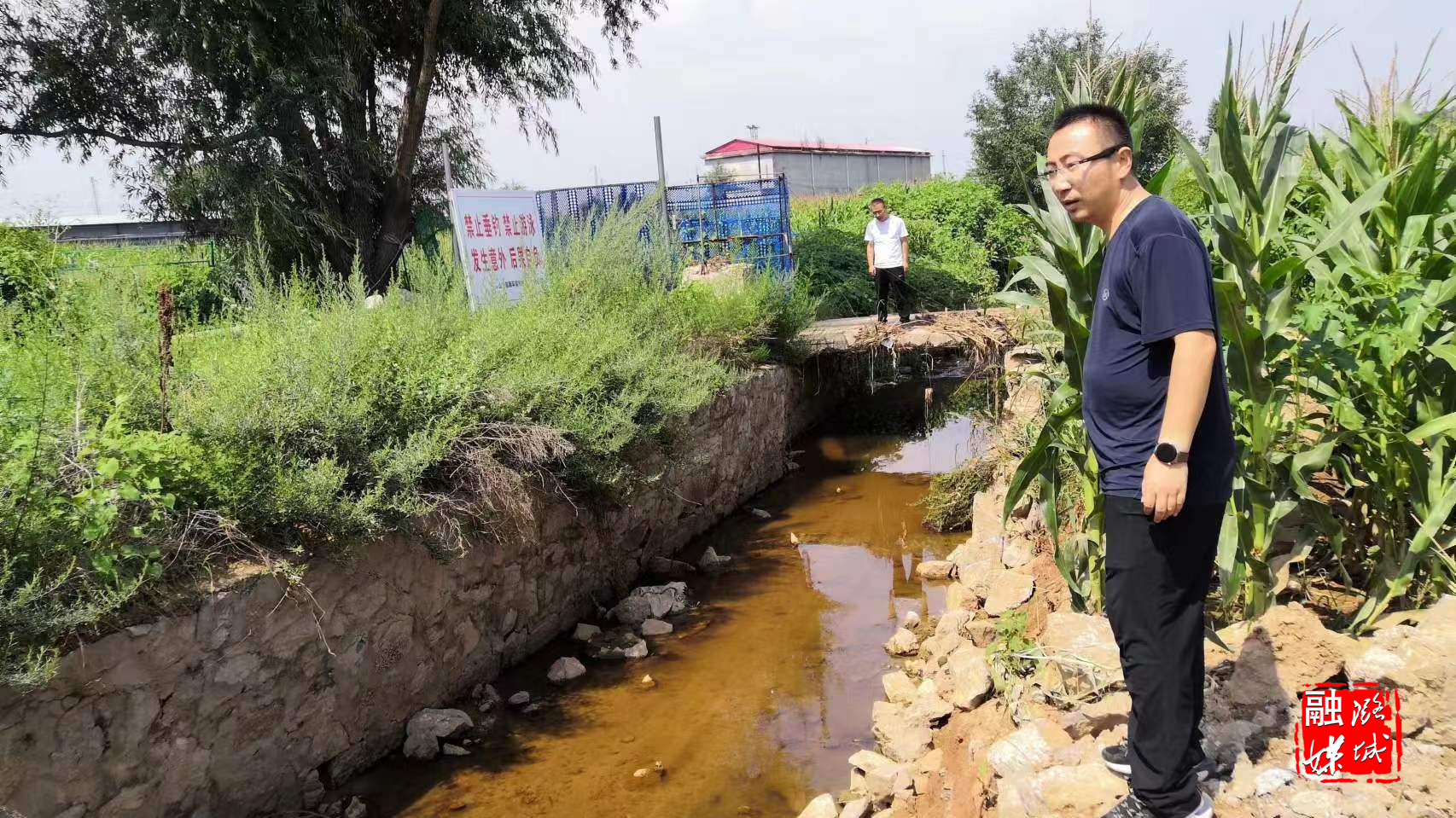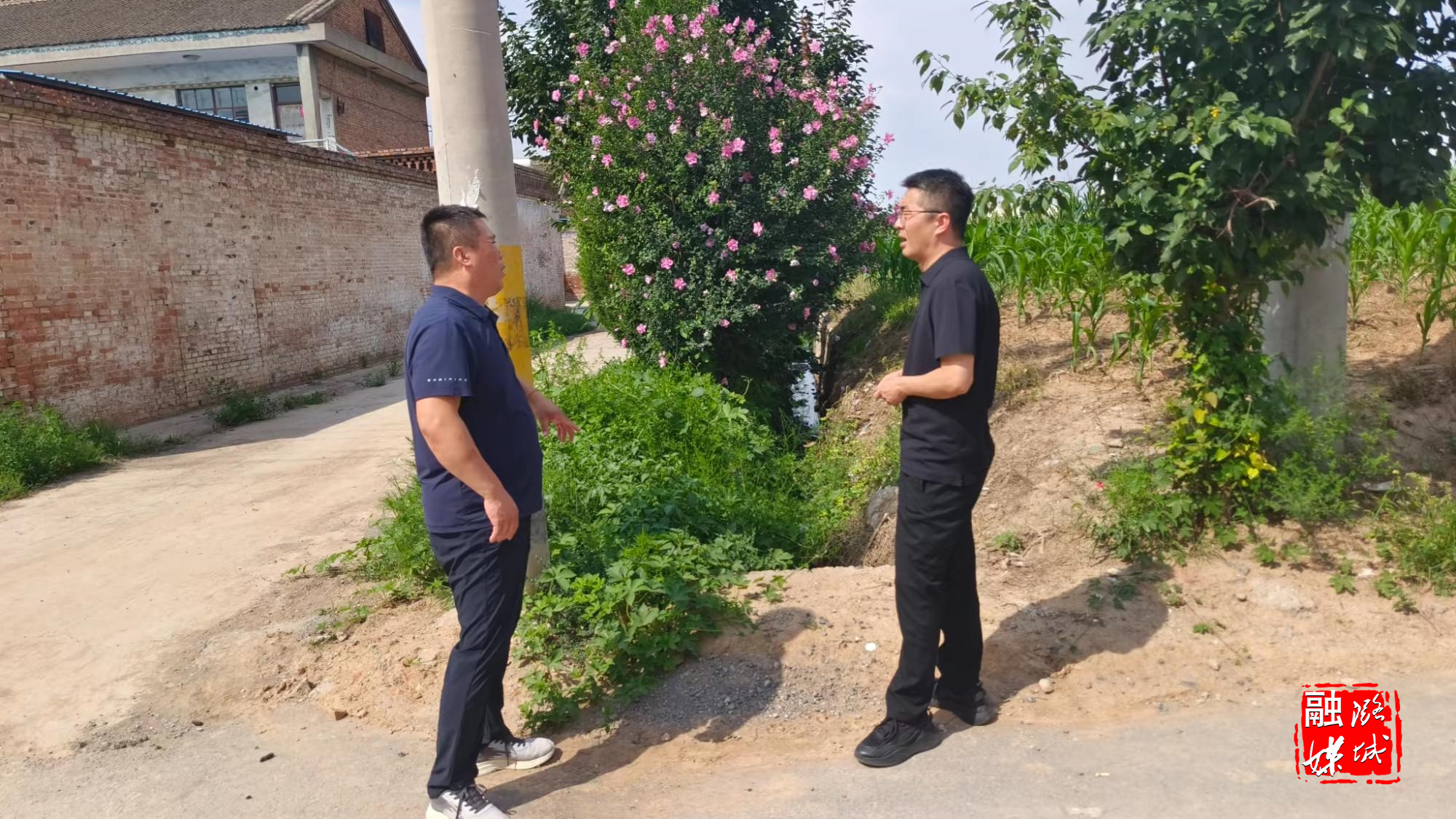▲翟店街道相关负责人到村查看河道疏通治理情况,确保汛期排水通畅。