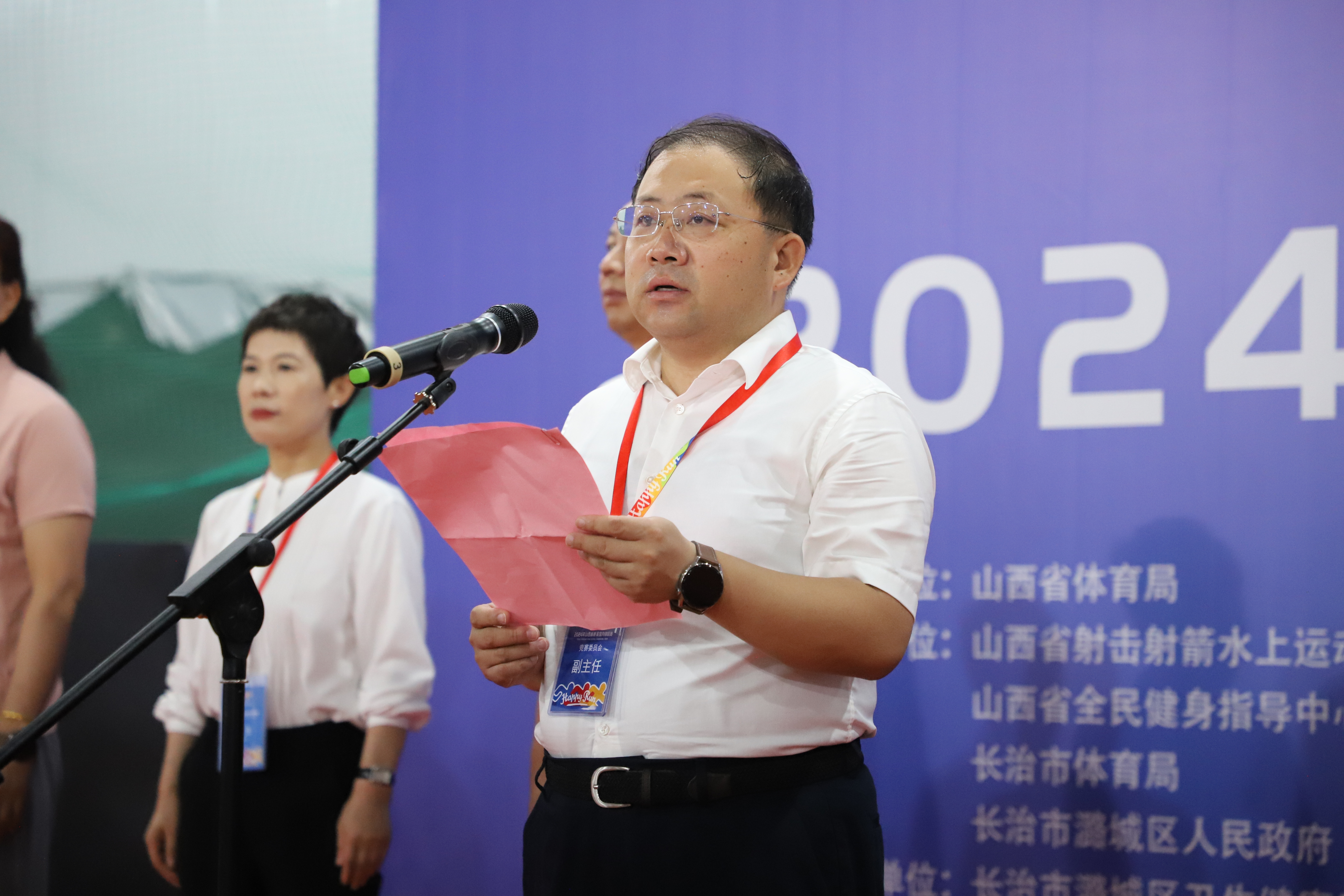 7月29日上午,“奔跑吧·少年”2024年山西省射箭室内锦标赛在我区开赛。“奔跑吧·少年”2024年山西省射箭室内锦标赛竞赛委员会主任、山西省射击射箭水上运动中心主任武永胜,区委书记段尧刚,区委副书记、区长柴哲,长治市体育局局长史淑枝出席开幕式。副区长王振华主持开幕式。来自全省各地区的24个参赛队,357名运动员参加此次比赛。