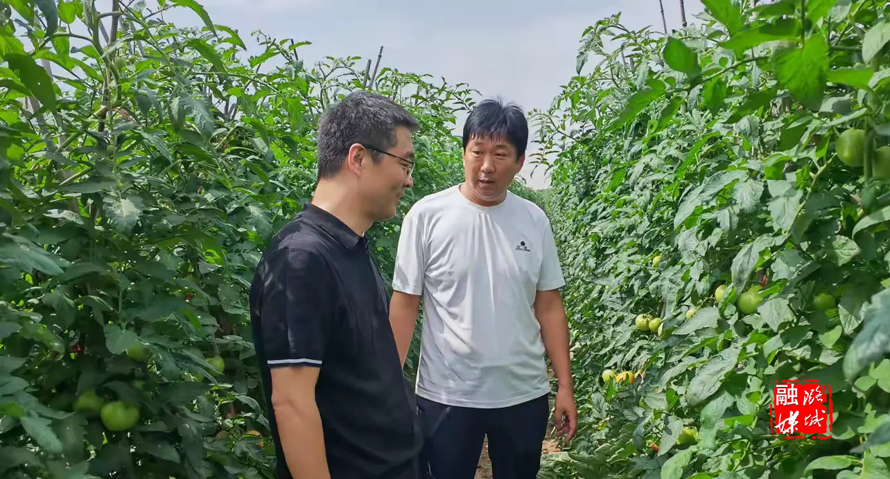 ★8月5日,成家川街道相关负责人在神泉村查看西红柿日常管理和产品生长情况。