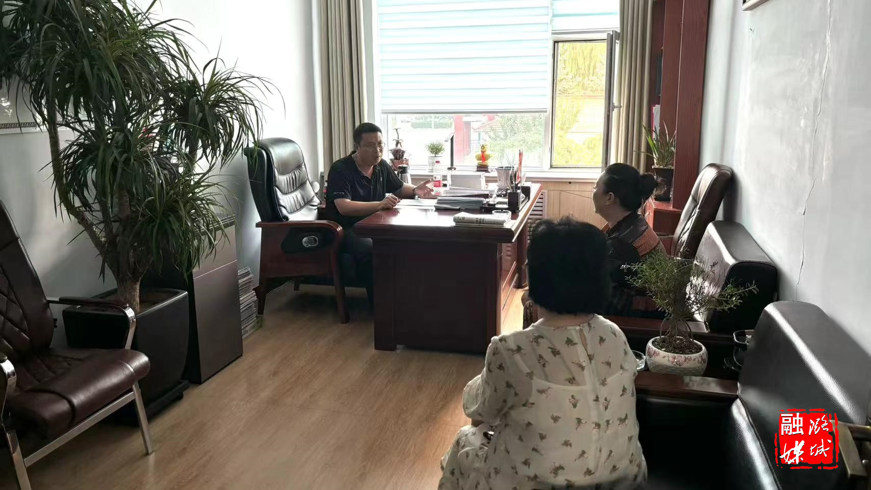 ▲翟店街道负责人与辖区内企业负责人商讨项目建设情况,积极推动企业扩大生产规模。
