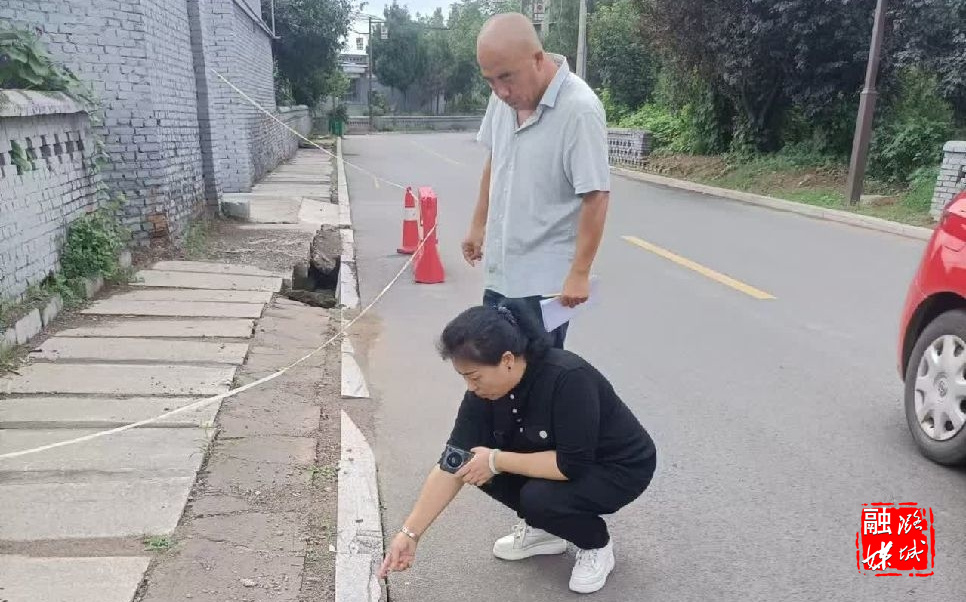 ▲黄牛蹄乡相关负责人到黄牛蹄水库查看路面排水设施维修情况,并排查河道安全隐患。