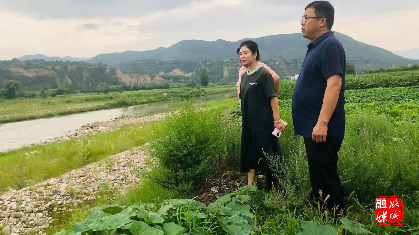 ▲辛安泉镇相关负责人在石梁村、潞河村排查河道、地灾点等重点区域安全隐患。