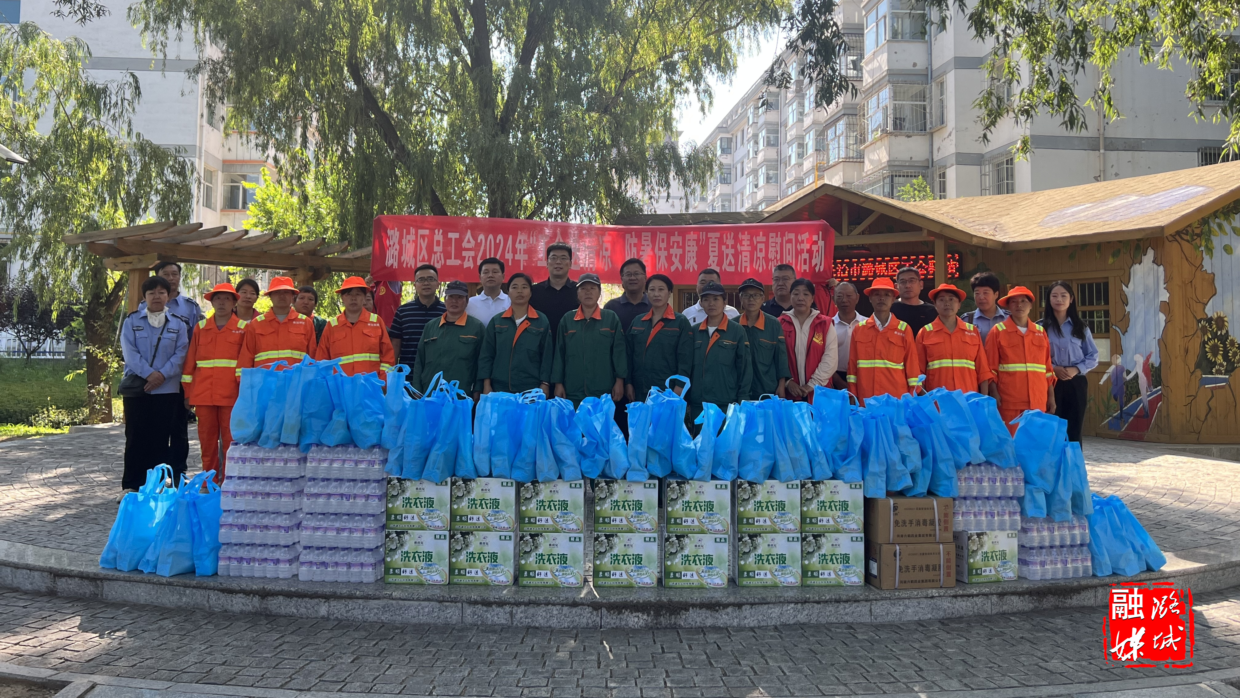 ★8月12日,区总工会开展2024年“工会送清凉 防暑保安康”夏送清凉慰问活动,为环卫工人送去洗衣液、风油精、矿泉水、清凉包等日常生活用品。区委常委、副区长冯立功,区政协副主席靳忠玲出席活动。