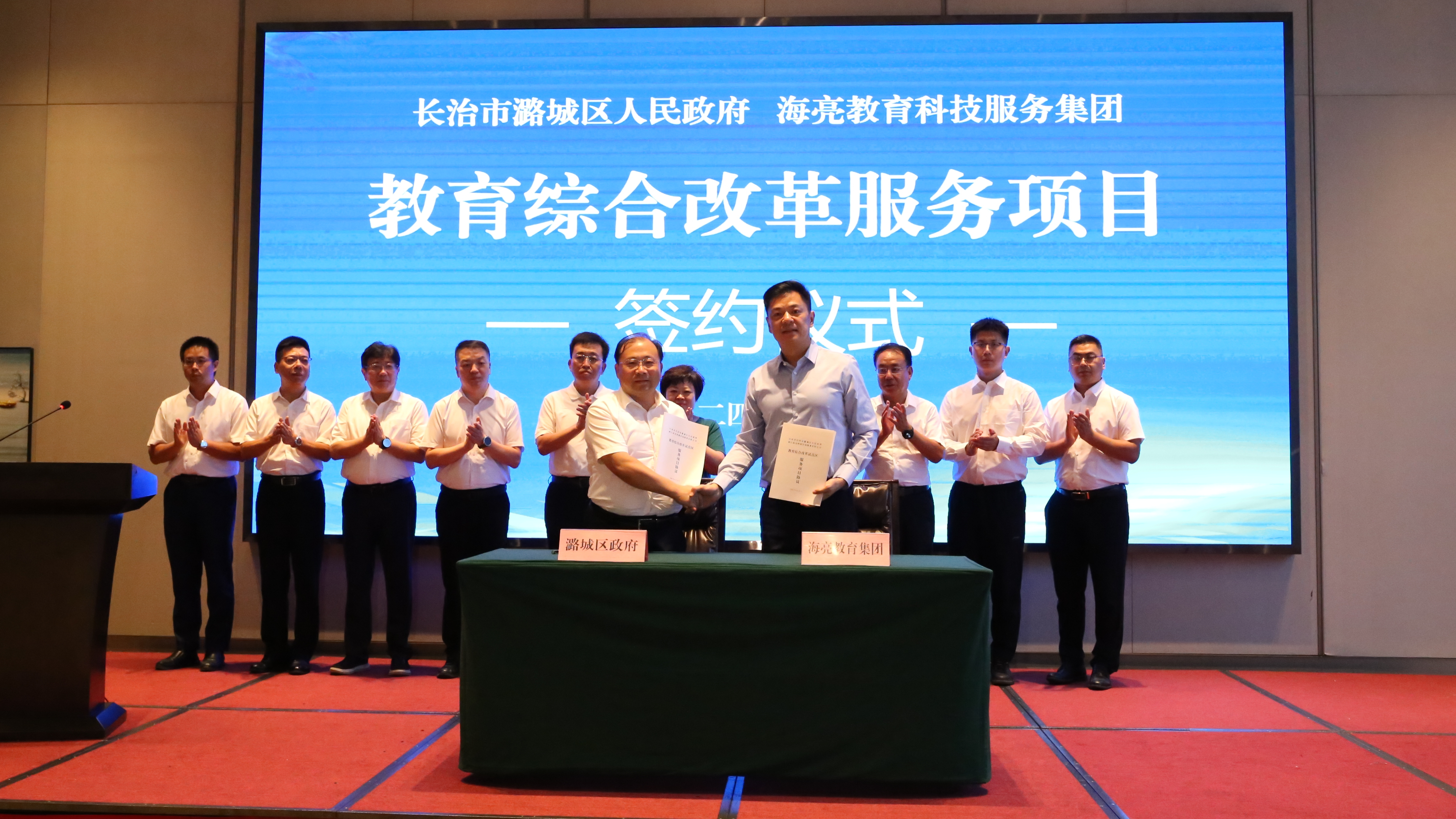 8月20日下午,我区与海亮教育科技服务集团就教育综合改革服务项目进行签约。副市长朱静,区领导段尧刚、柴哲、翟勇、琚海鹏、王振华,海亮教育科技服务集团副总裁朱周刚出席仪式。各有关部门负责人参加。