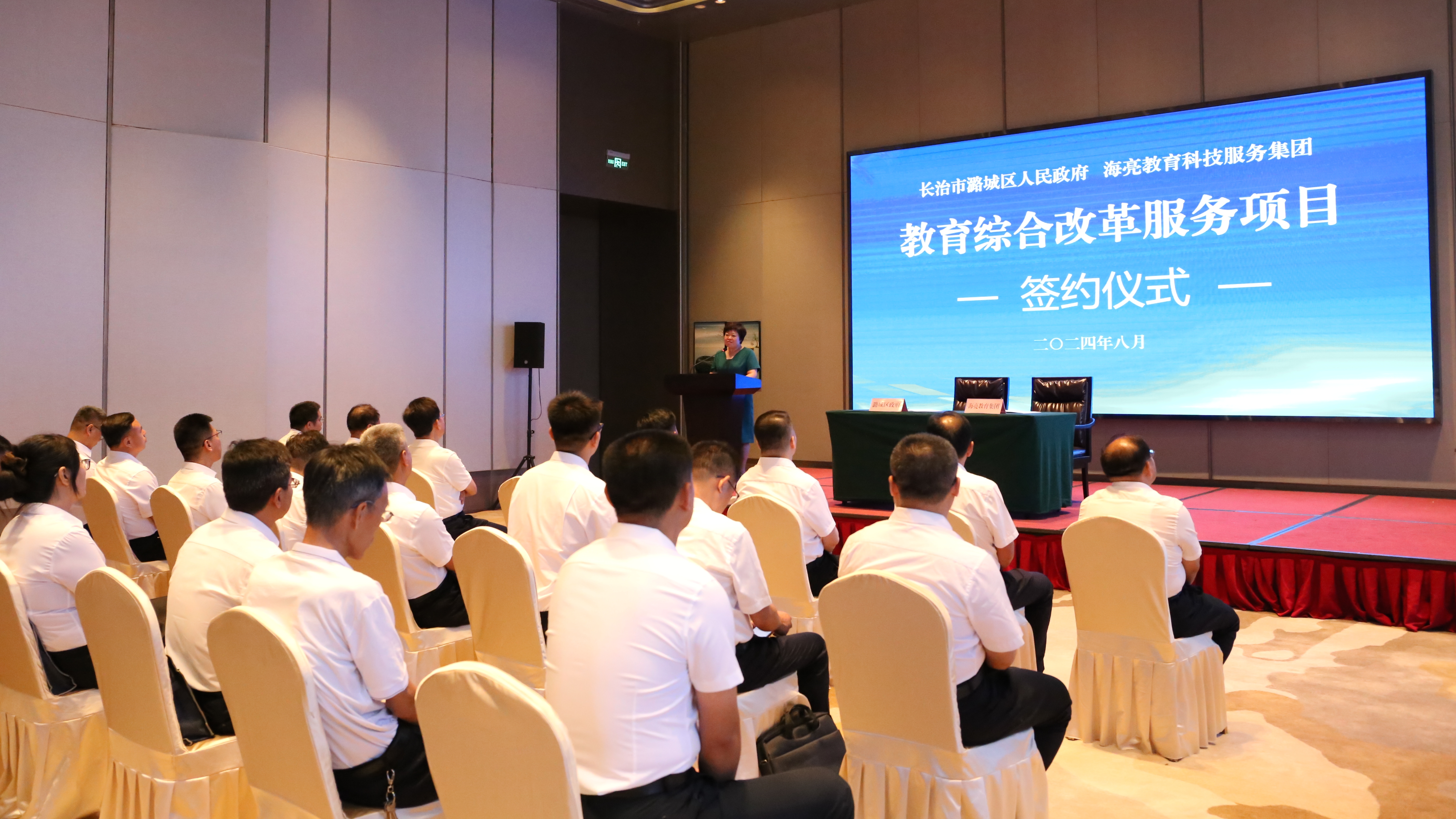 签约仪式上,柴哲代表区政府与海亮教育科技服务集团进行签约。