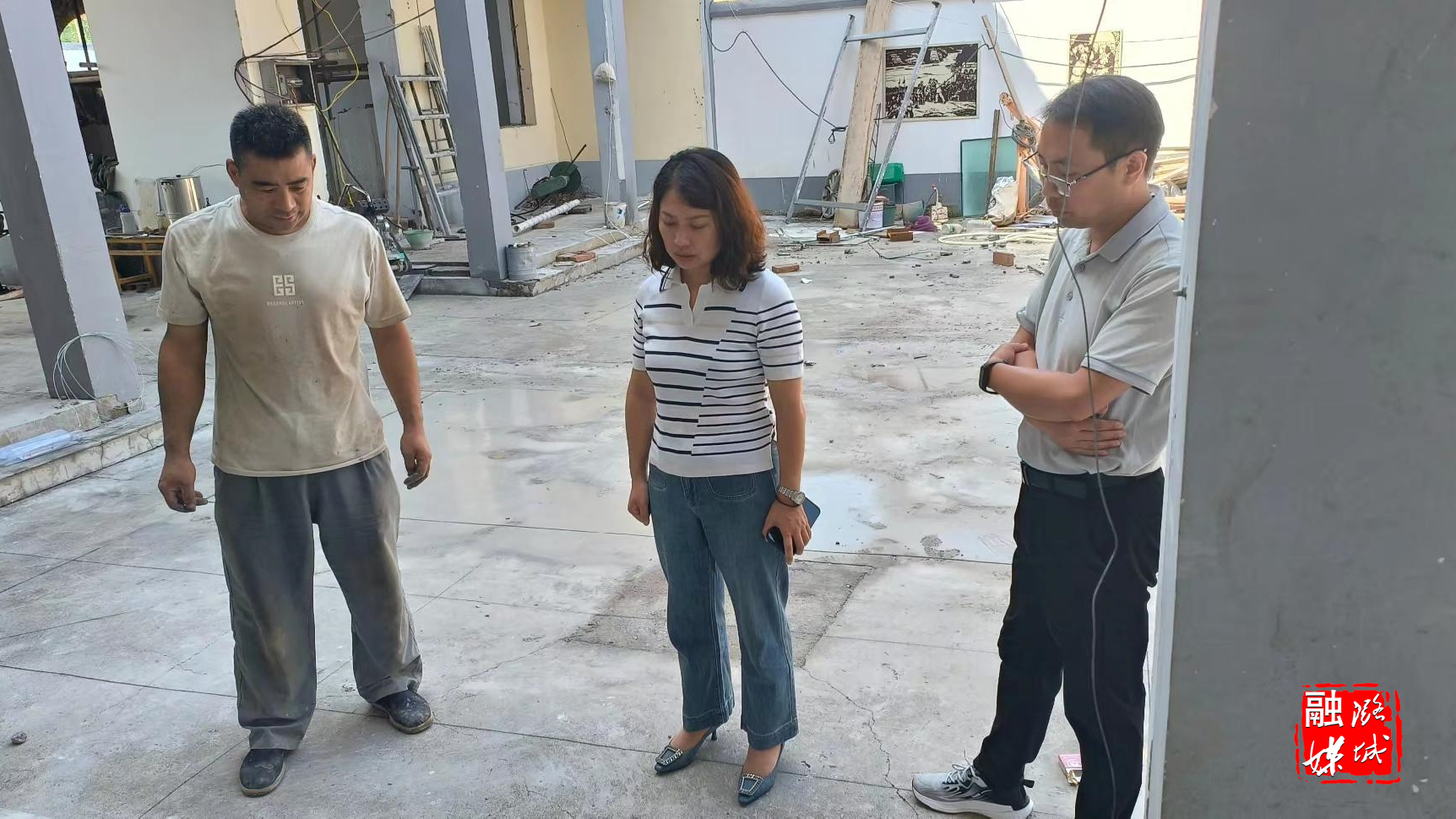 ▲微子镇负责人在微子村督导第九届文化艺术节筹备工作。