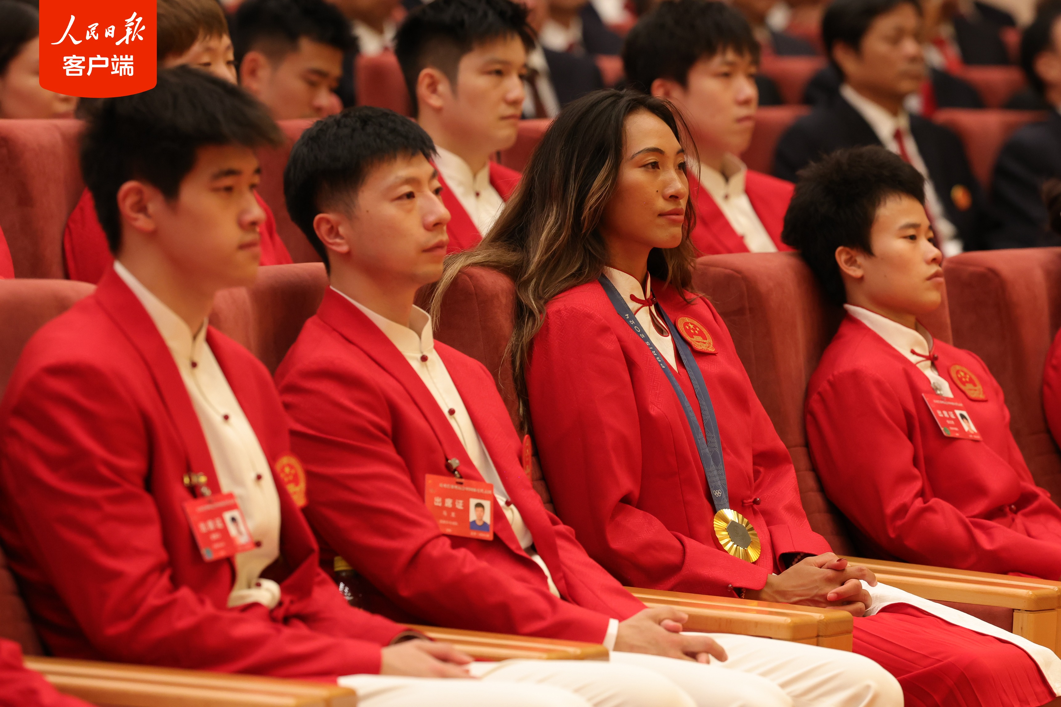 习近平总书记走进北京人民大会堂金色大厅,亲切接见载誉归来的第33届夏季奥林匹克运动会中国体育代表团。掌声如潮。