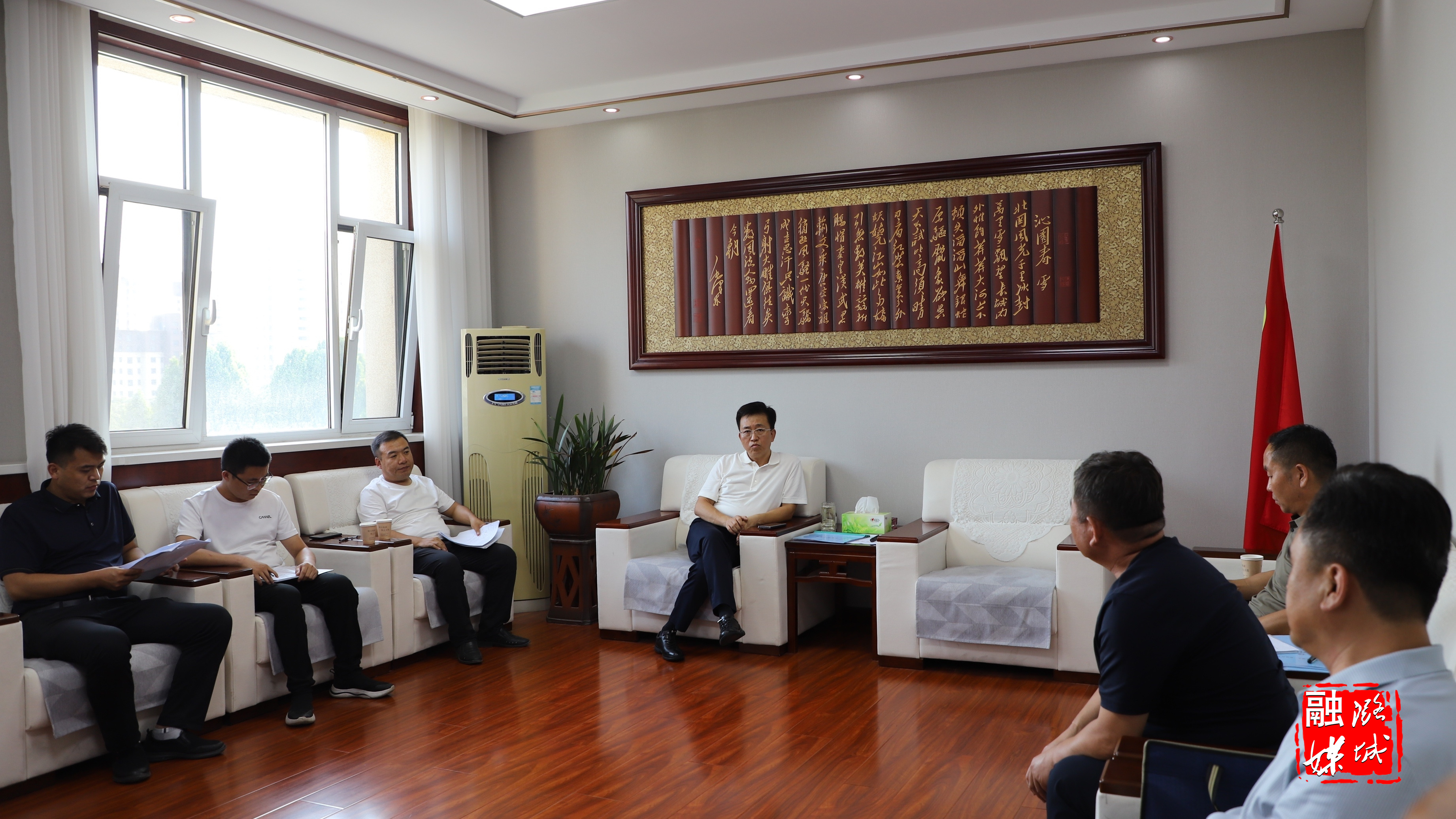 ★8月22日,店上镇负责人与金鼎潞宝相关负责人就桓安物流铁路专用线项目进行沟通协调。