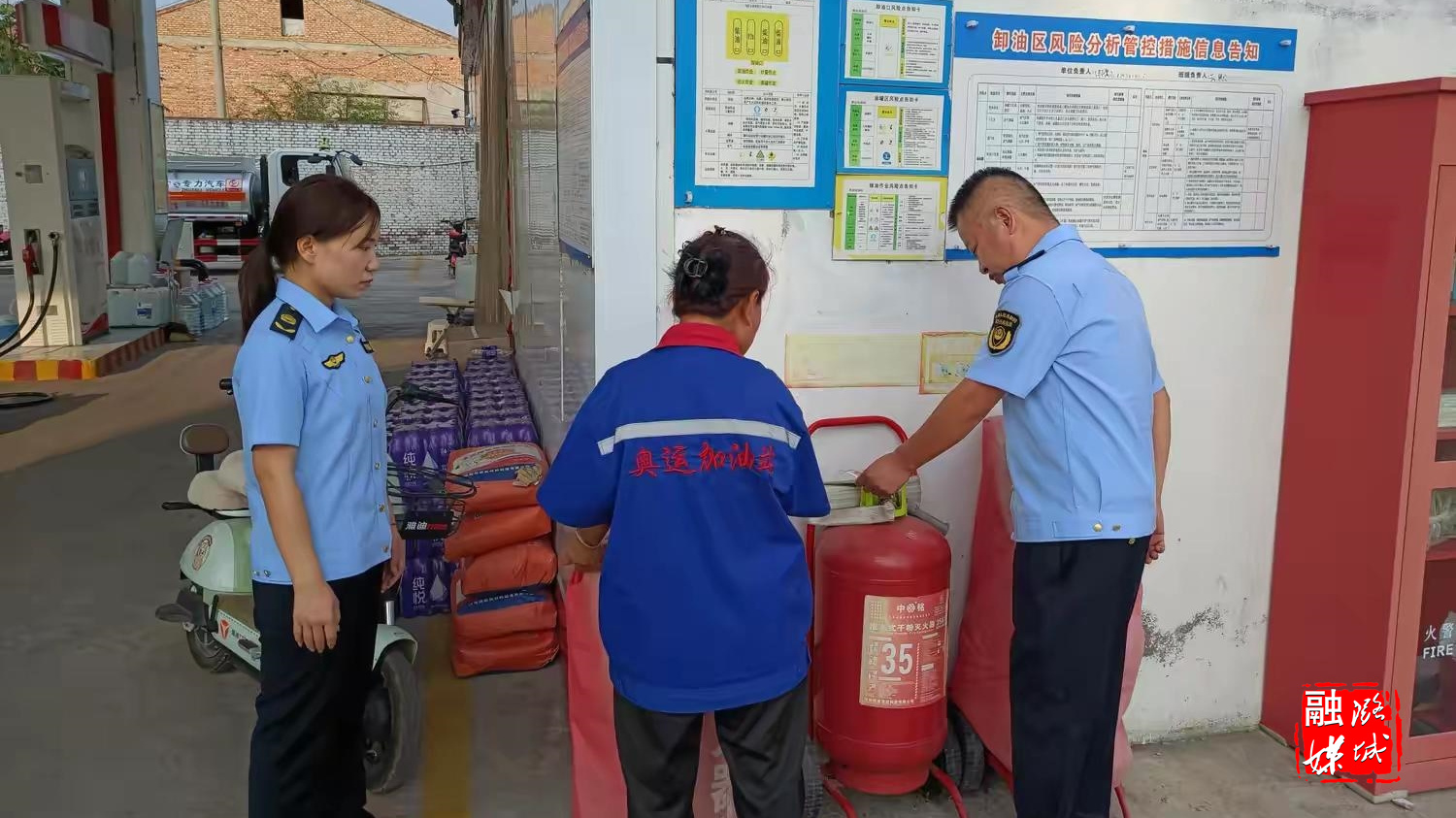 ▲黄牛蹄乡相关负责人到辖区加油站排查消防安全隐患。
