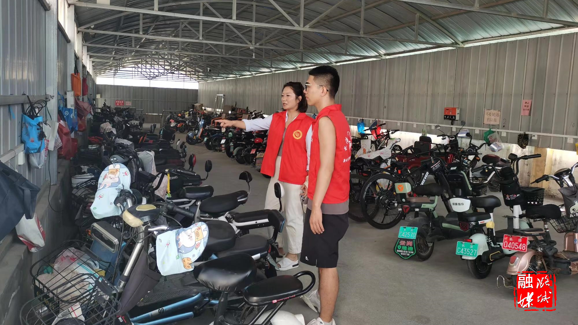 ▲潞华街道西华社区工作人员在小区开展消防安全隐患排查工作。