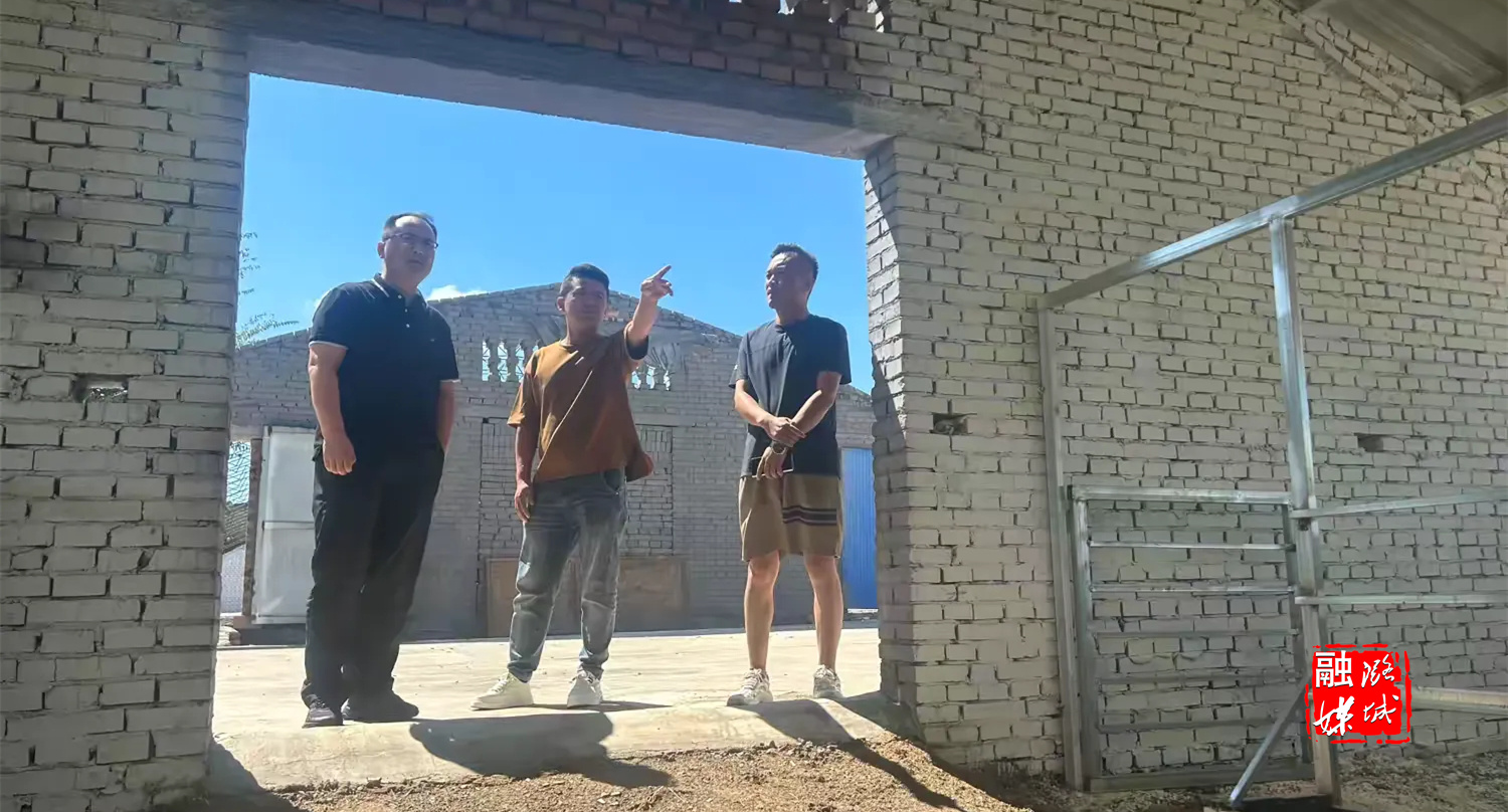 ▲成家川街道负责人到台东村盛源牧业公司推进万只羊场建设进度。