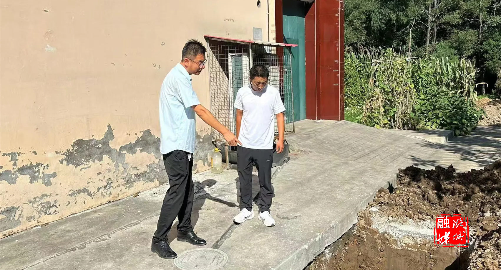 ▲店上镇工作人员到曹家沟村就集中供热工程进行查看指导。