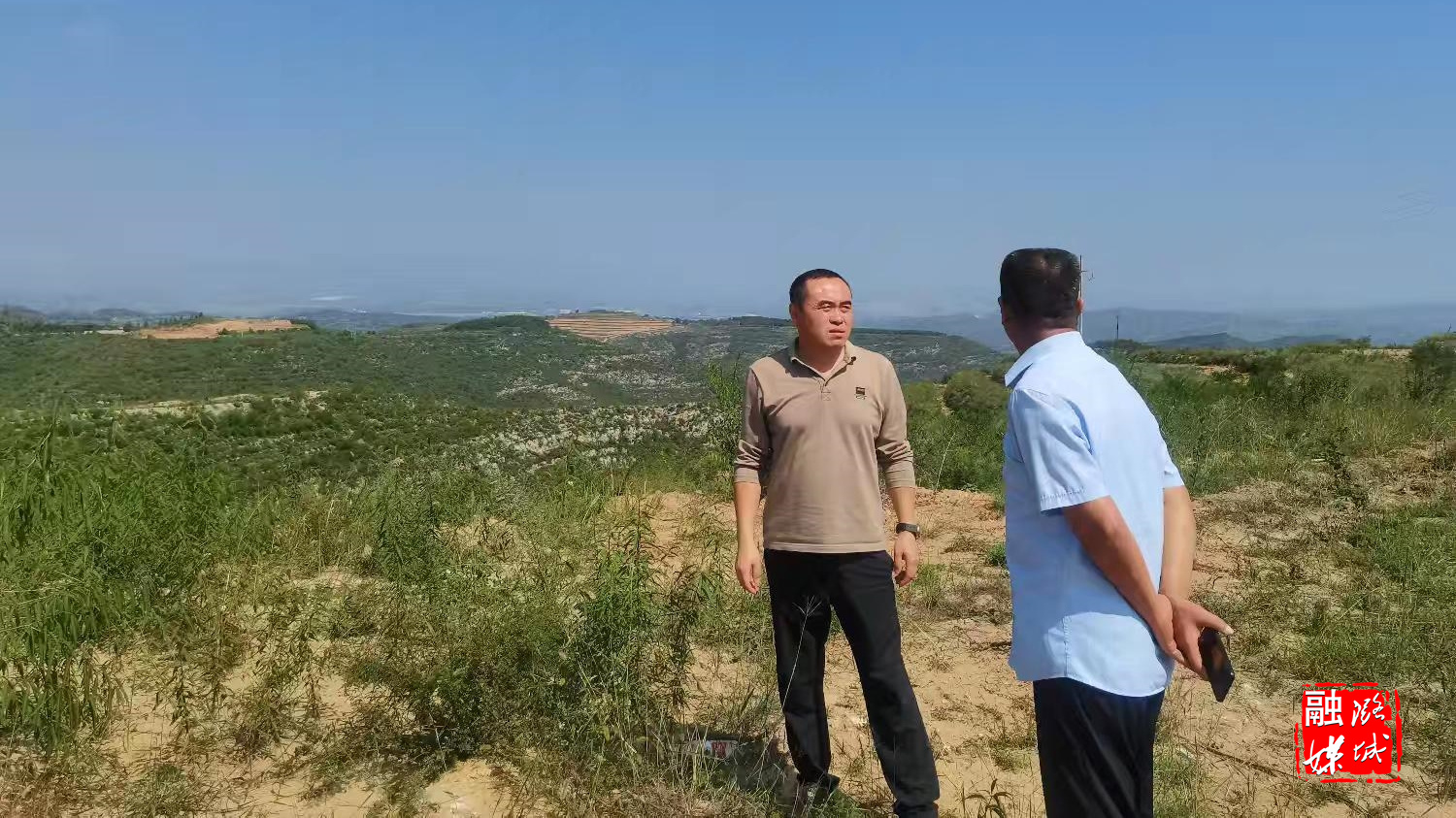 ▲微子镇相关负责人在沟东村连翘种植基地查看种植情况。