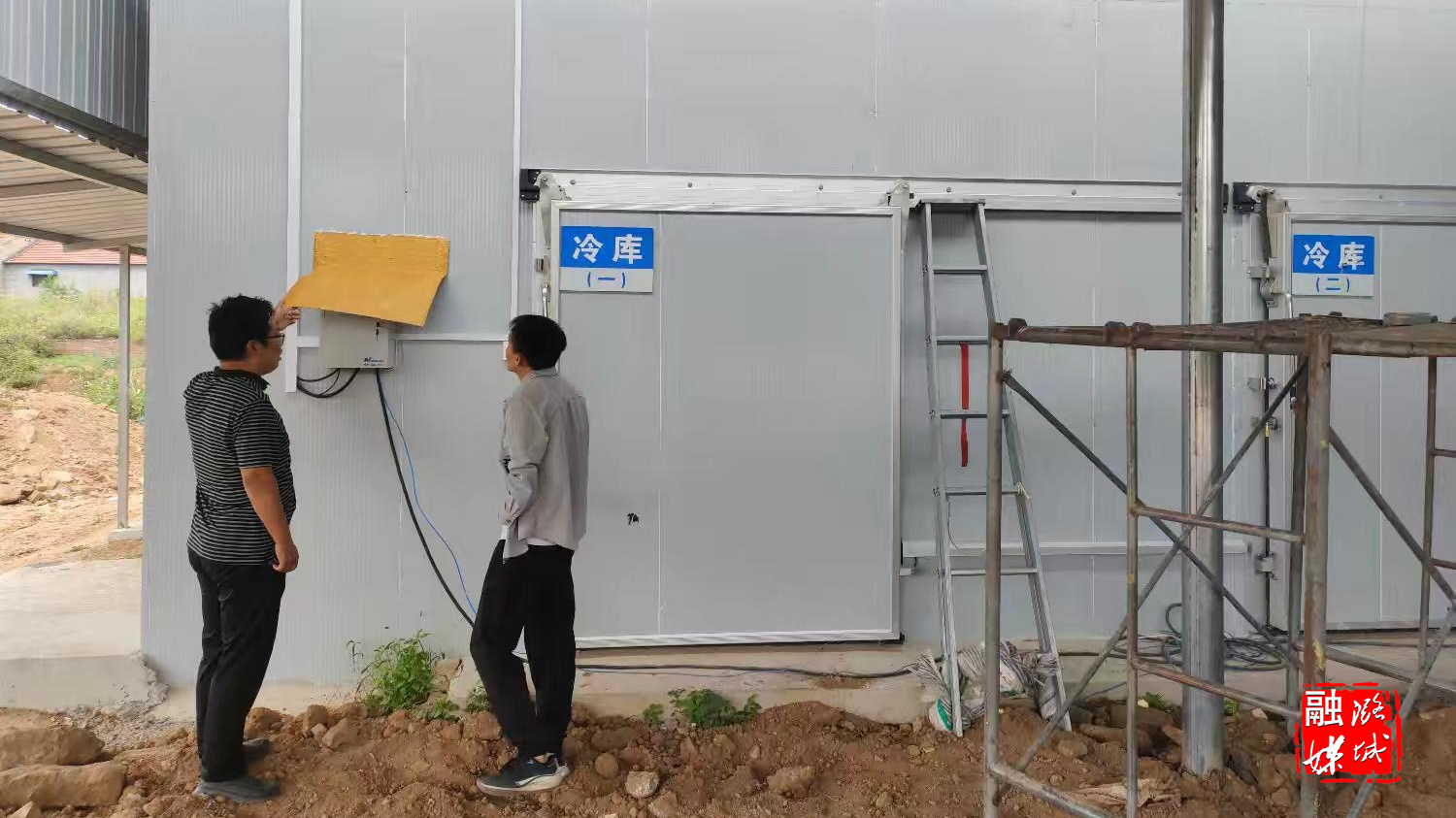 ▲微子镇工作人员在东靳村查看香菇种植基地建设情况。