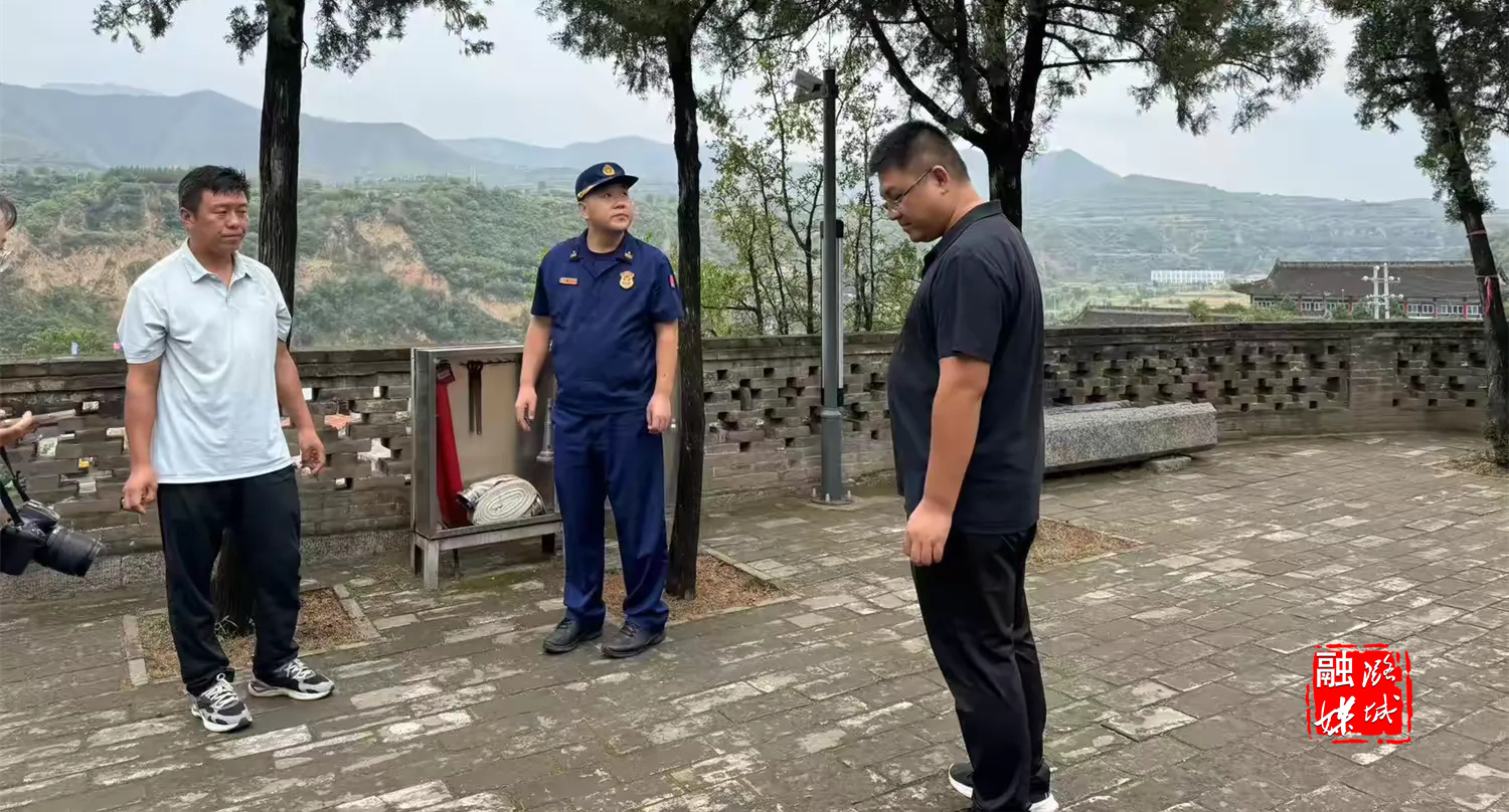 ▲区消防救援大队负责人在黄牛蹄乡原起寺、玉皇庙等古建单位现场指导消防设施使用规范。