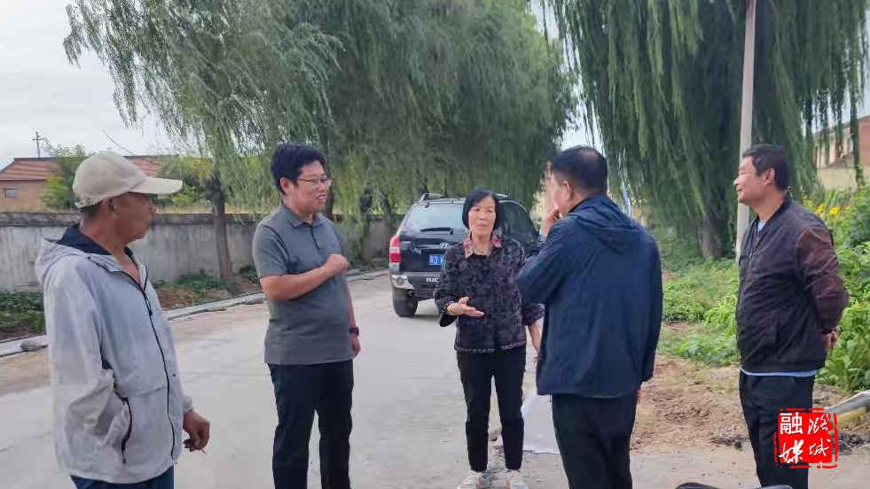 ★9月13日,微子镇相关负责人在西靳村同施工方商讨路面硬化施工相关事宜。