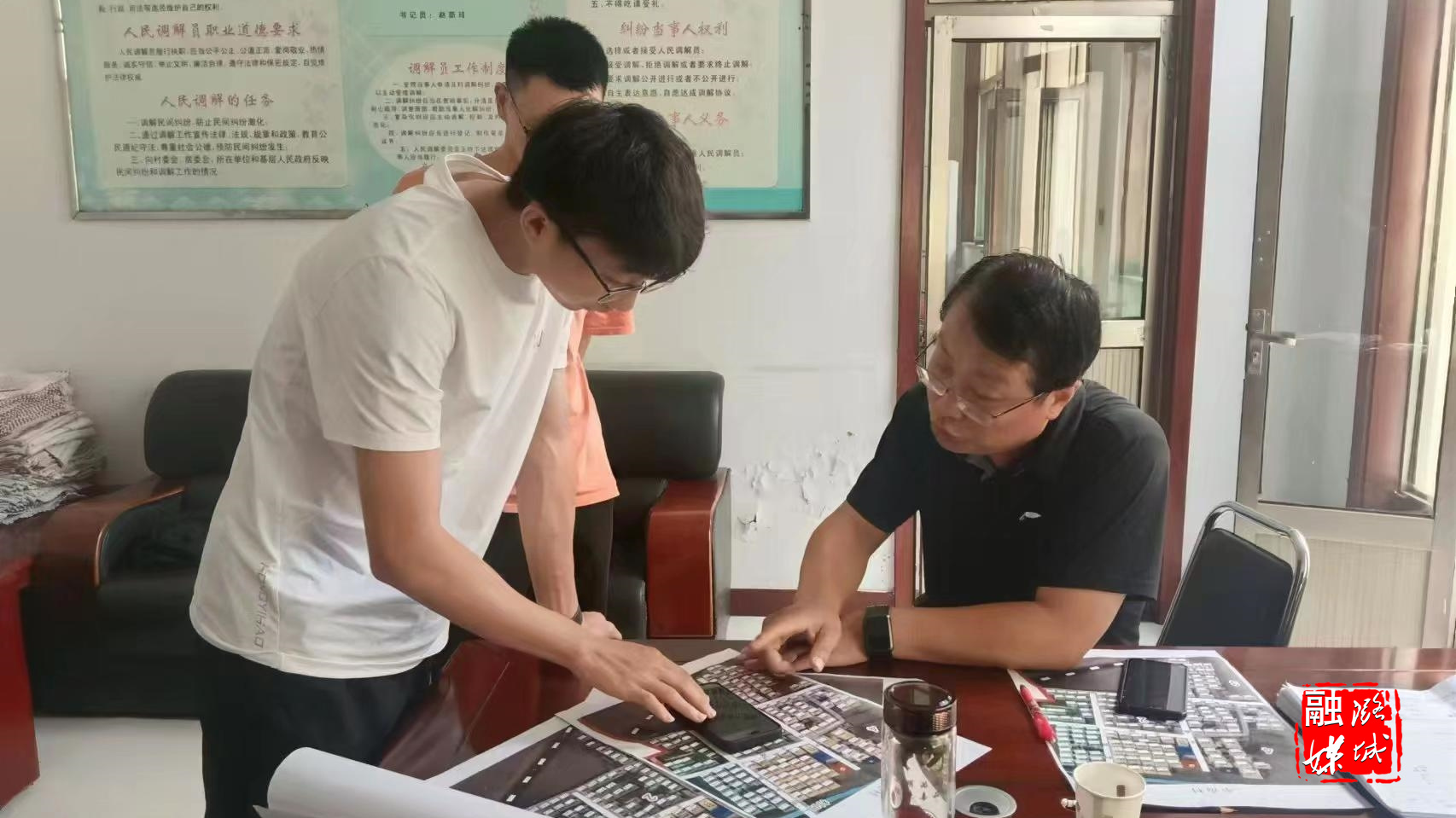 ▲史回镇工作人员到小沟村与供热公司对供热管道设计路线进行商讨,并入户走访核对供热面积。