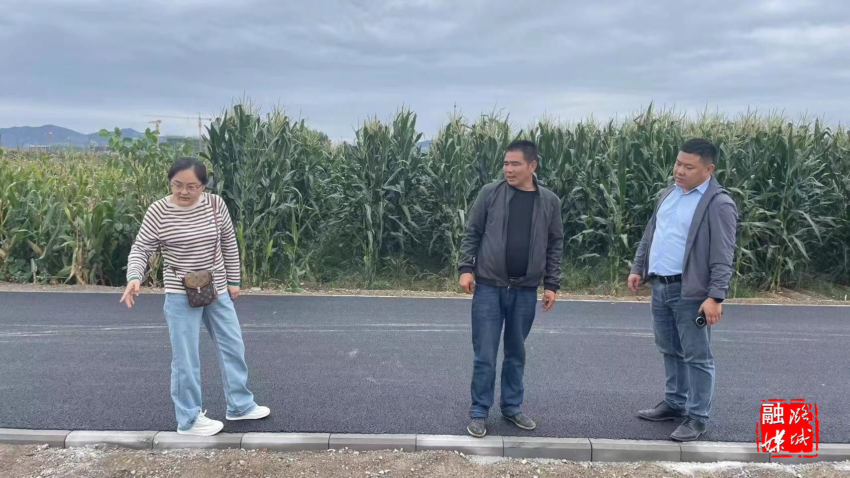 ▲翟店街道相关负责人到村查看设施蔬菜种植基地产业路建设情况。