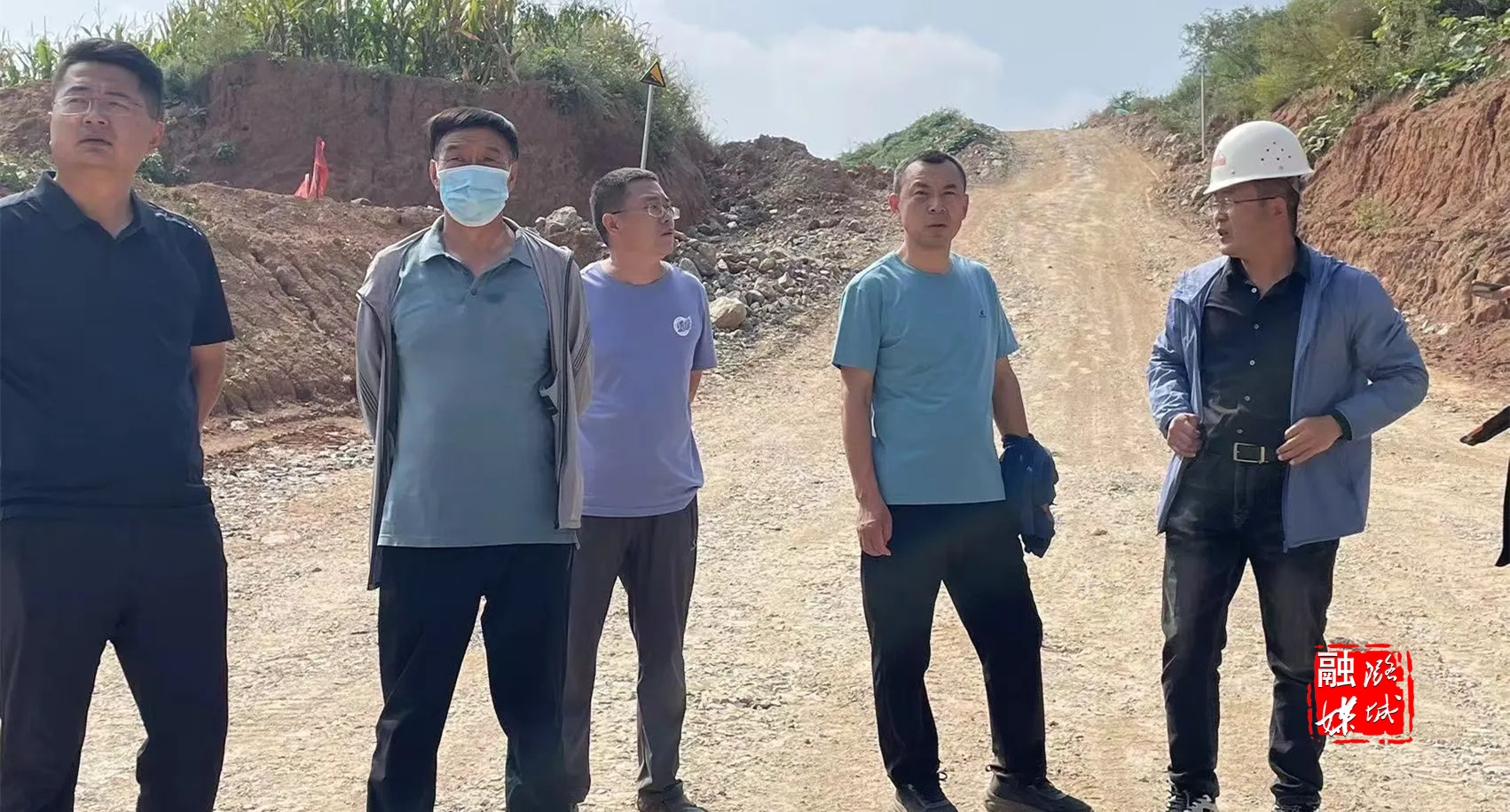 ▲区交通运输局负责人在店辛线施工现场就施工进度、安全、质量进行督导检查。