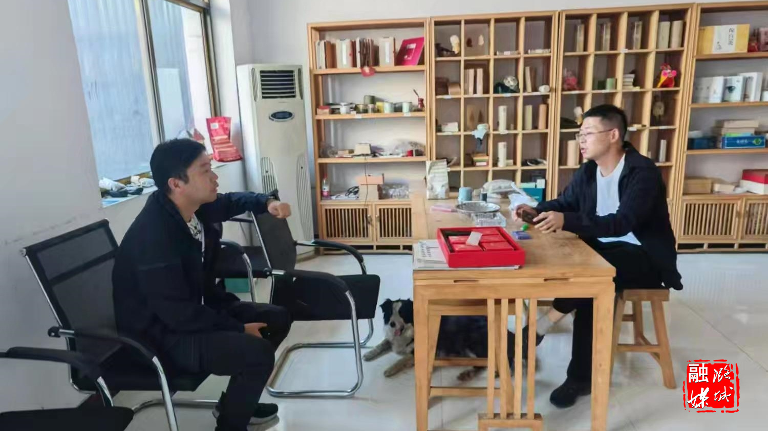 ▲微子镇工作人员同潞艾健康科技有限公司负责人就潞艾科创试训基地项目进展进行座谈。