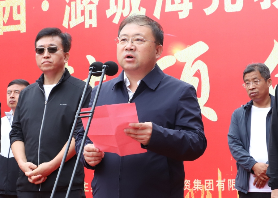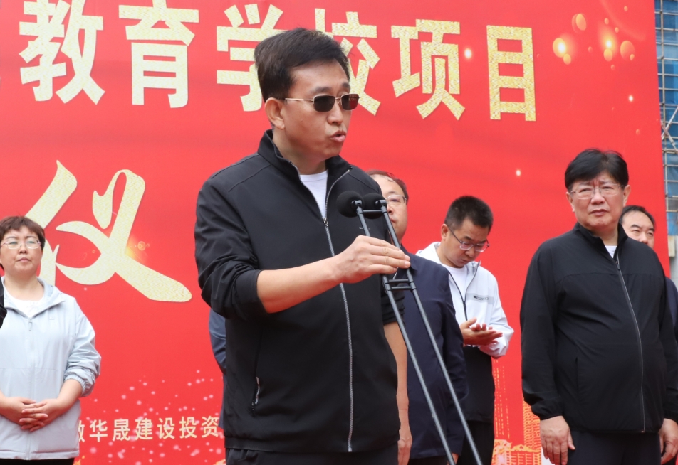 仪式上,段尧刚宣布山西·潞城海亮教育学校项目主体结构正式封顶,柴哲致辞。