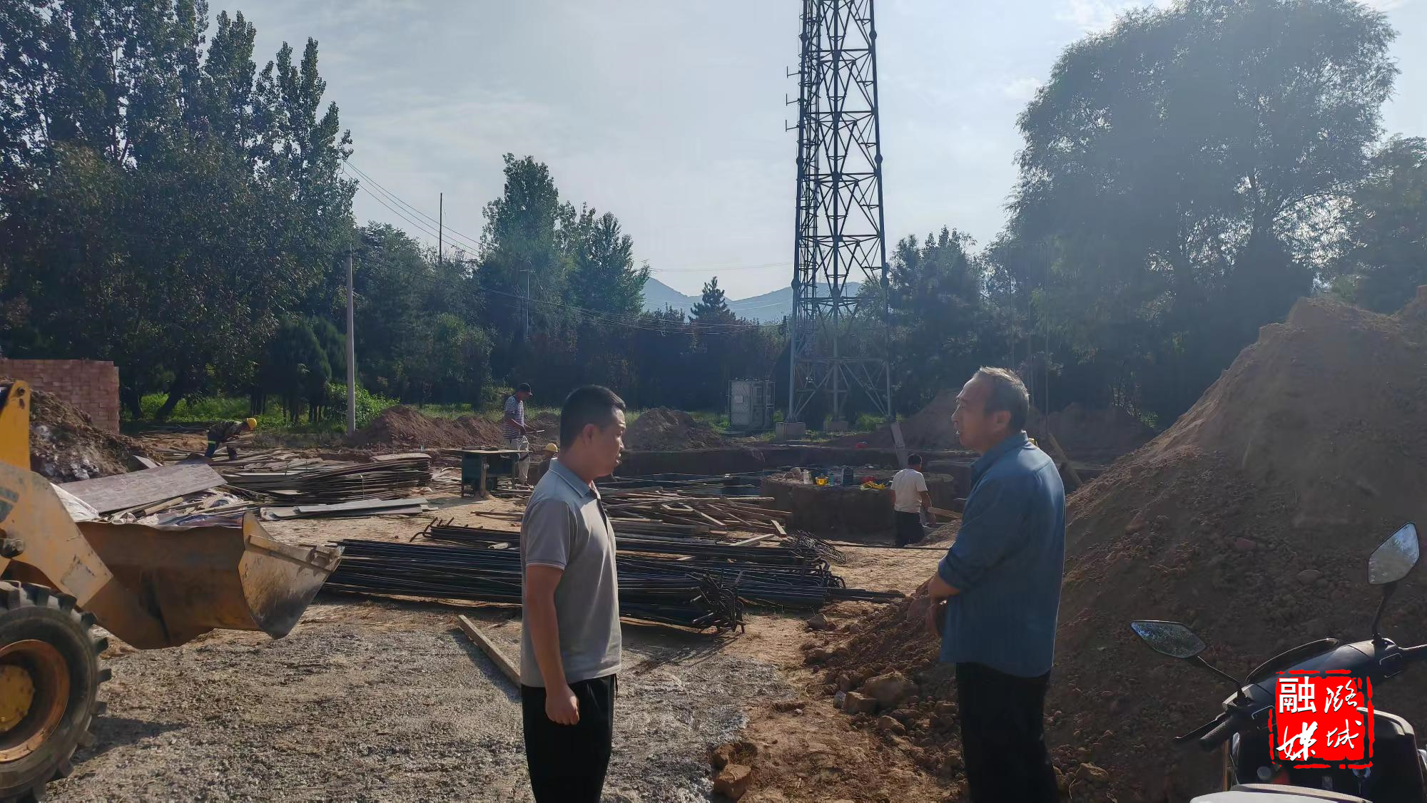 ▲成家川街道相关负责人在成家川村协调推进集中供热改造项目建设施工进度。