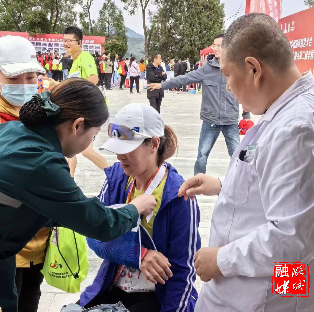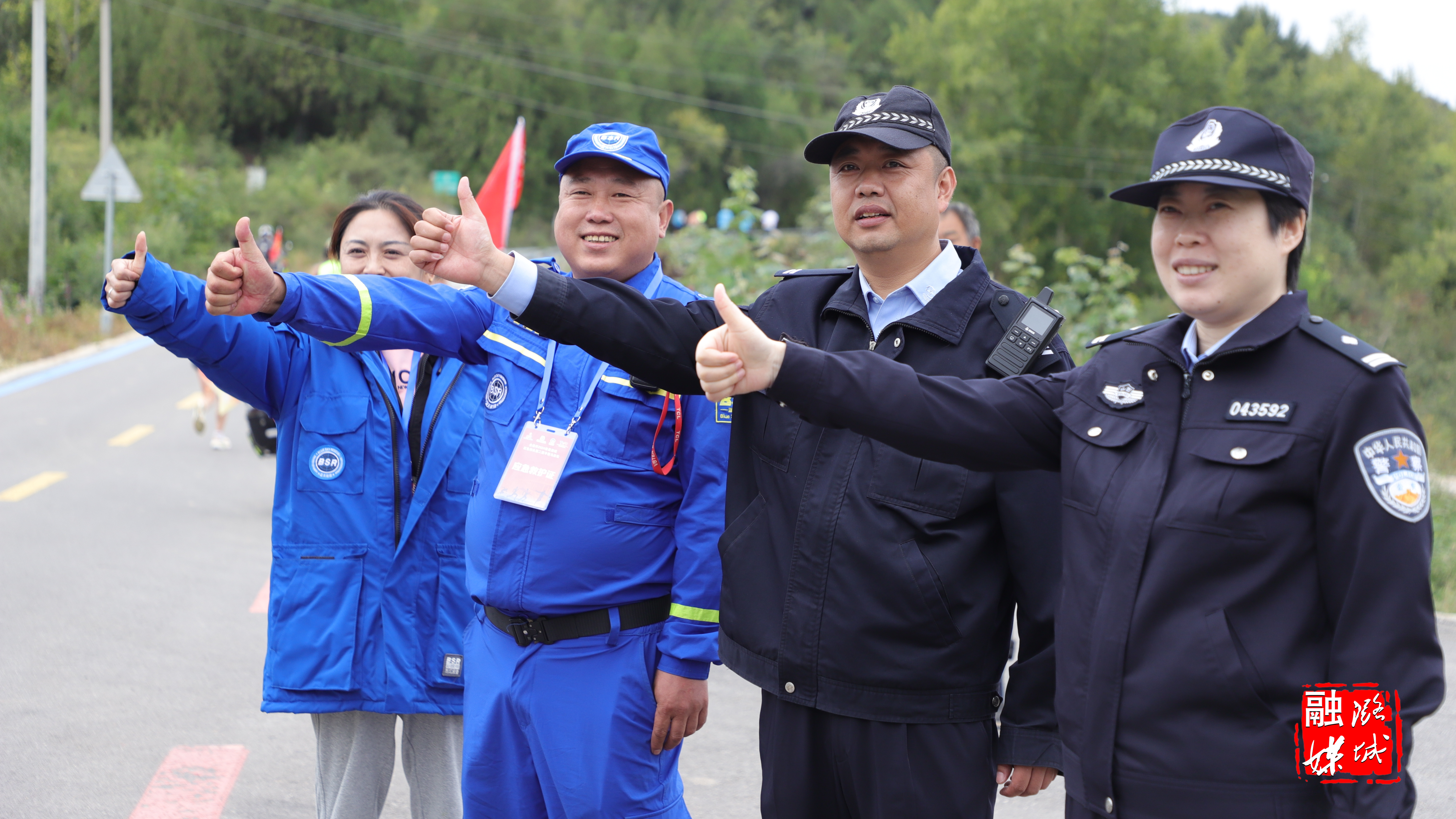 身穿各色运动服的选手们如颜料般,为潞城这幅丰收画卷又添色彩。在这众多色彩中,志愿红、救援蓝、白医天使、公安交警等格外显眼。