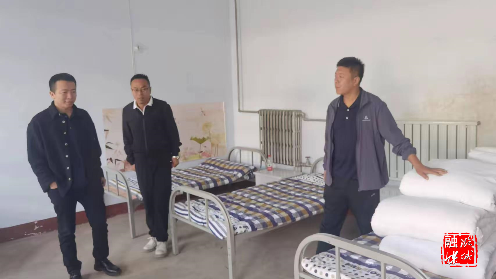 ▲黄牛蹄乡相关负责人到黄牛蹄村查看日间照料中心建设进展。
