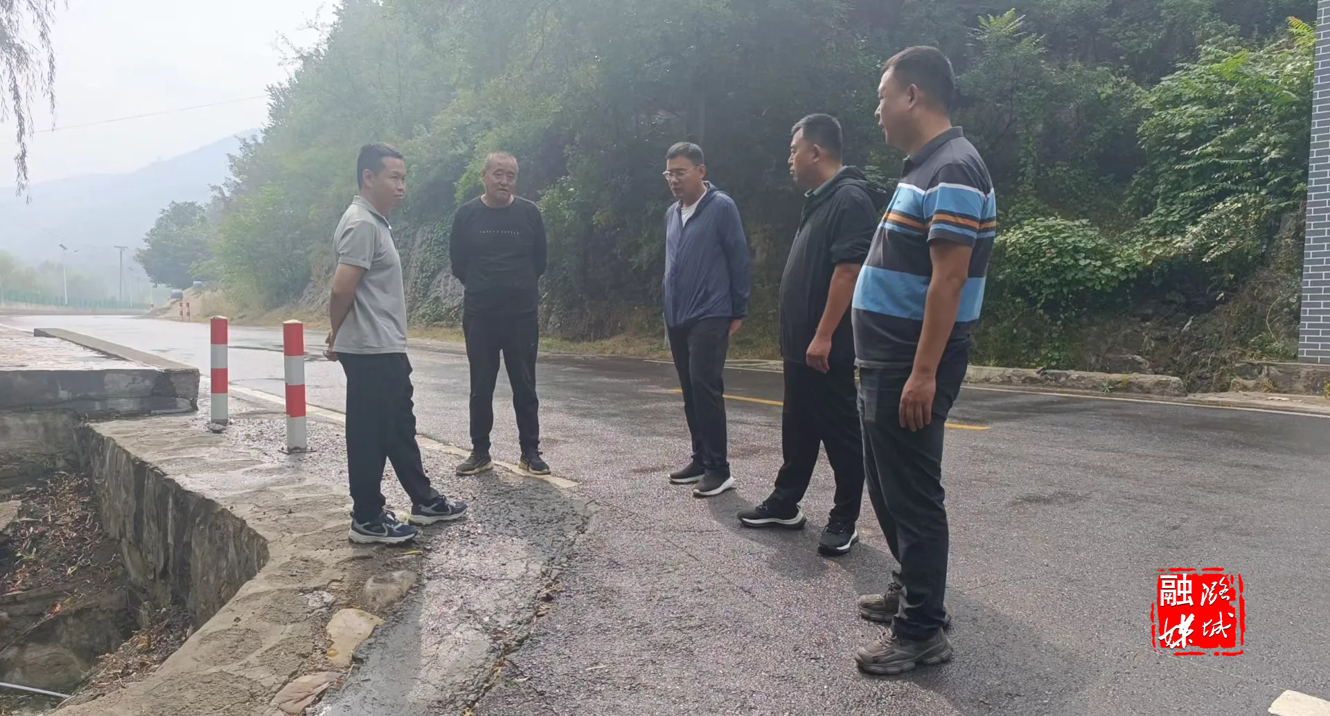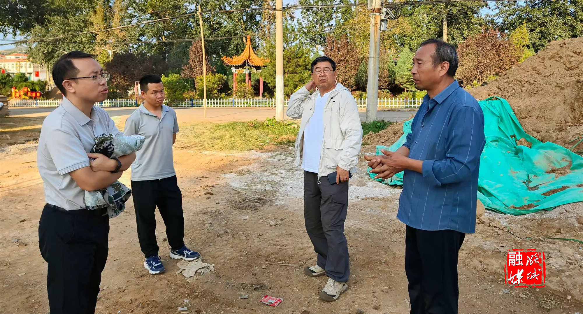 ▲微子镇相关负责人在神头村查看神头红色美丽村庄项目建设情况。