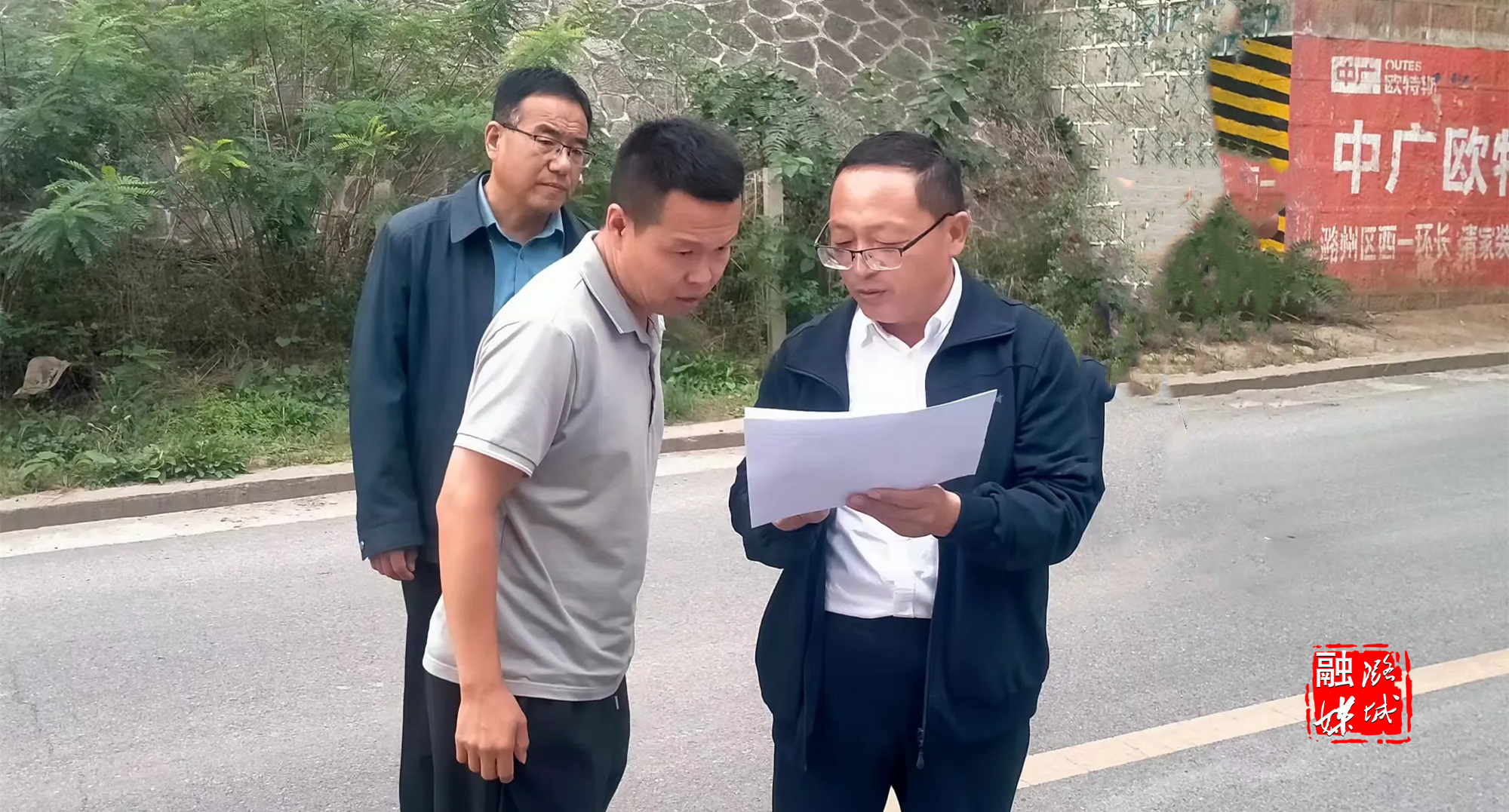 ▲潞华街道负责人到堡头村、中村沿线查看环境卫生整治情况。