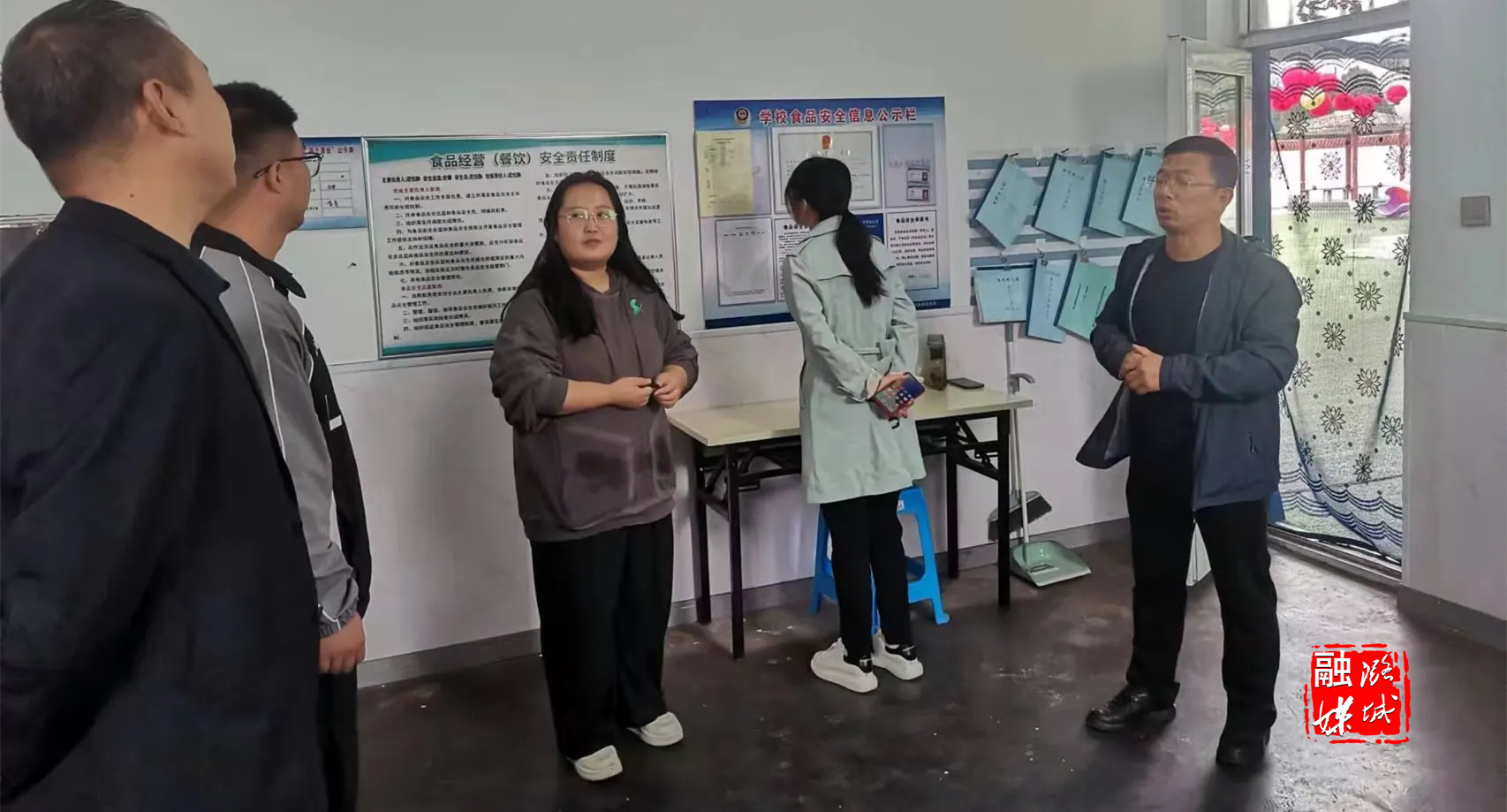 ▲店上镇工作人员到宋村幼儿园开展食品安全检查工作。