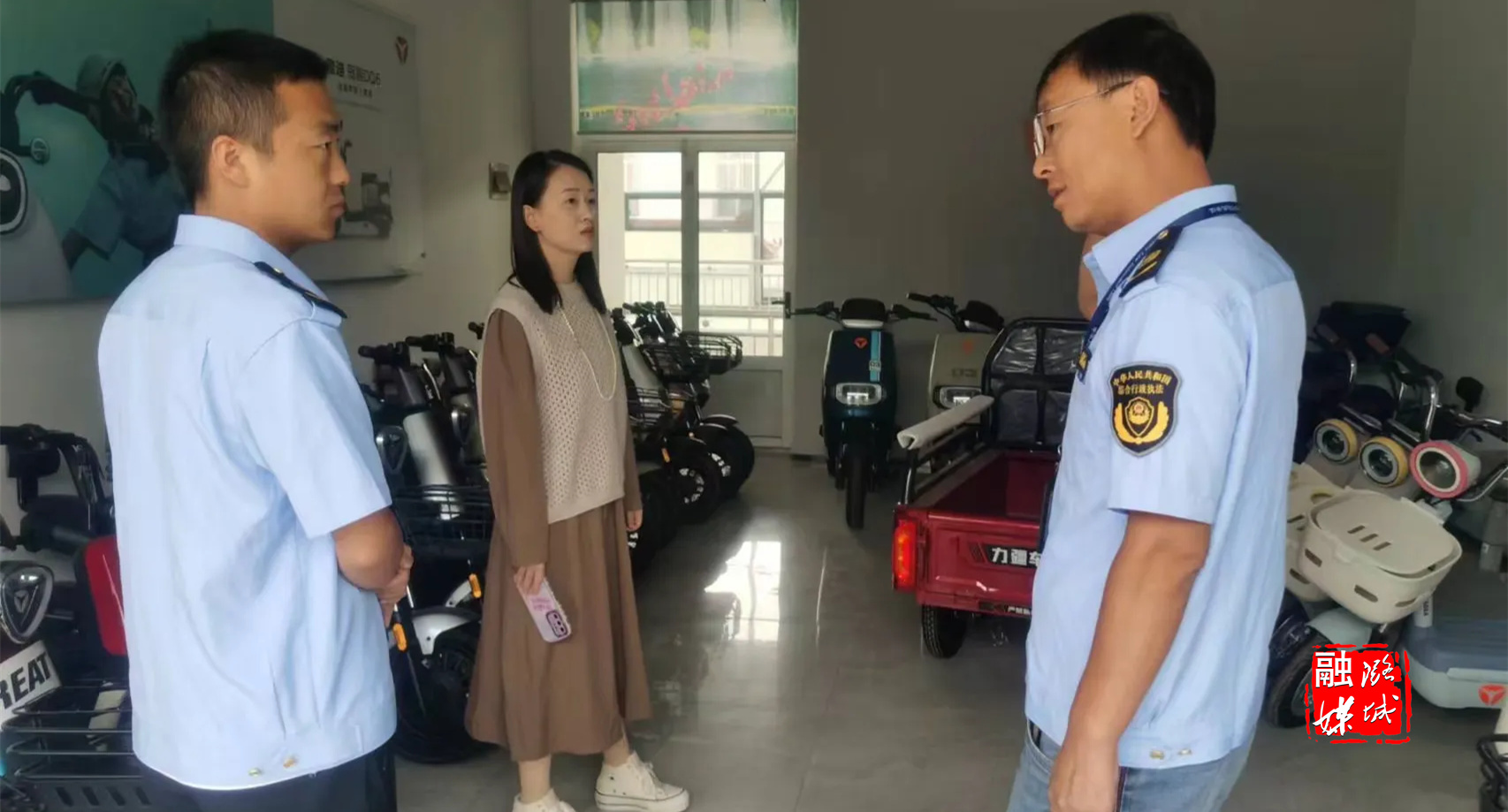 ▲辛安泉镇综合行政执法队对镇域内“九小场所”食品安全、电动车“飞线”充电安全隐患等进行排查。