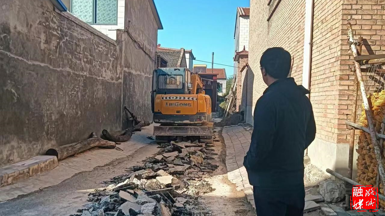 ▲史回镇工作人员到小沟村实地查看雨污分流工程进展情况。