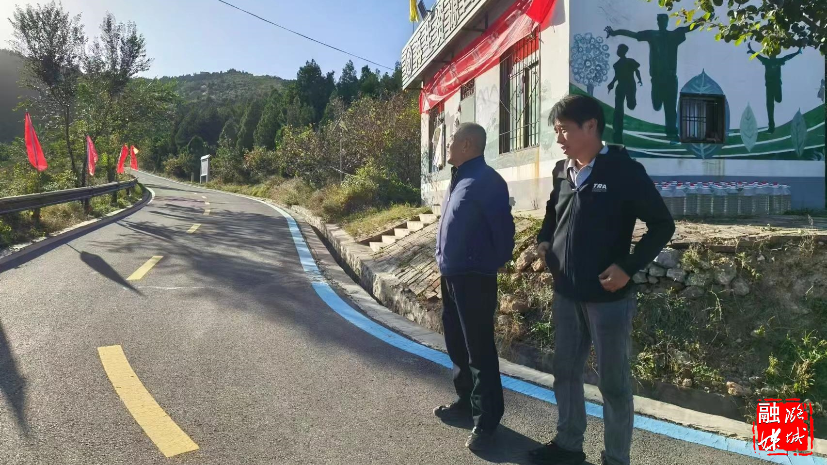 ▲区交通运输局负责人在“太行一号”旅游公路施工现场督导国庆假期施工安全、进度、质量等工作。