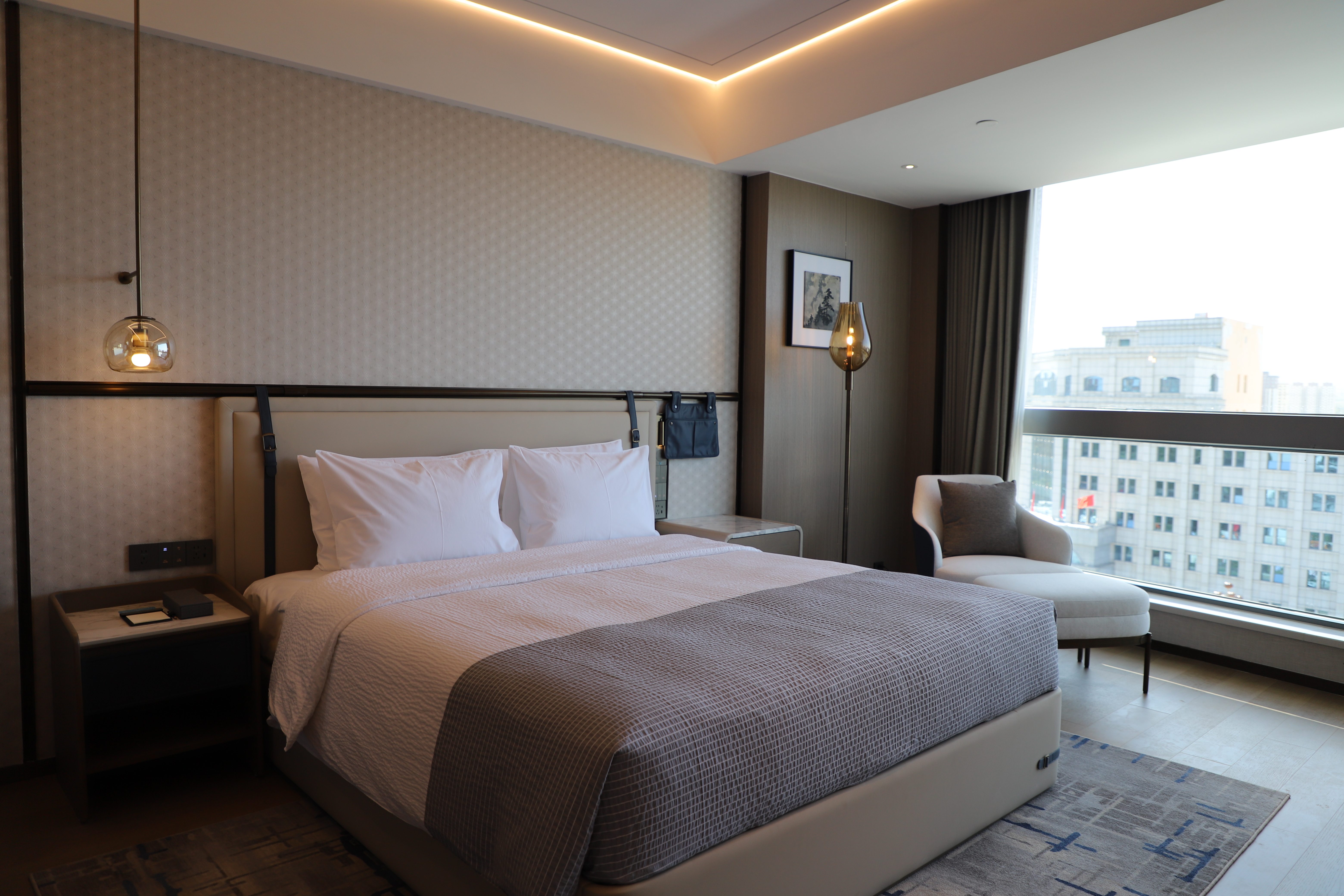 据了解,潞城万达悦华酒店于2023年由山西珺悦酒店运营管理有限公司进行升级打造,投资1.6亿元,是一家集餐饮、住宿、商务、会议等功能于一体的综合性高端酒店。目前,酒店拥有101间客房,每一间客房都经过精心设计,注重细节和舒适度;大堂设置有汉代中式风格的吧台,宋式建筑元素的挂画,充满着传统文化气息。此外,巨型紫色鸢尾花树与高达23米的巨幅《访潞城古八景有感八首》行书作品,更是成为该酒店装饰的点睛之笔,让宾客在享受现代舒适体验的同时,也能感受浓厚的潞城文化氛围。