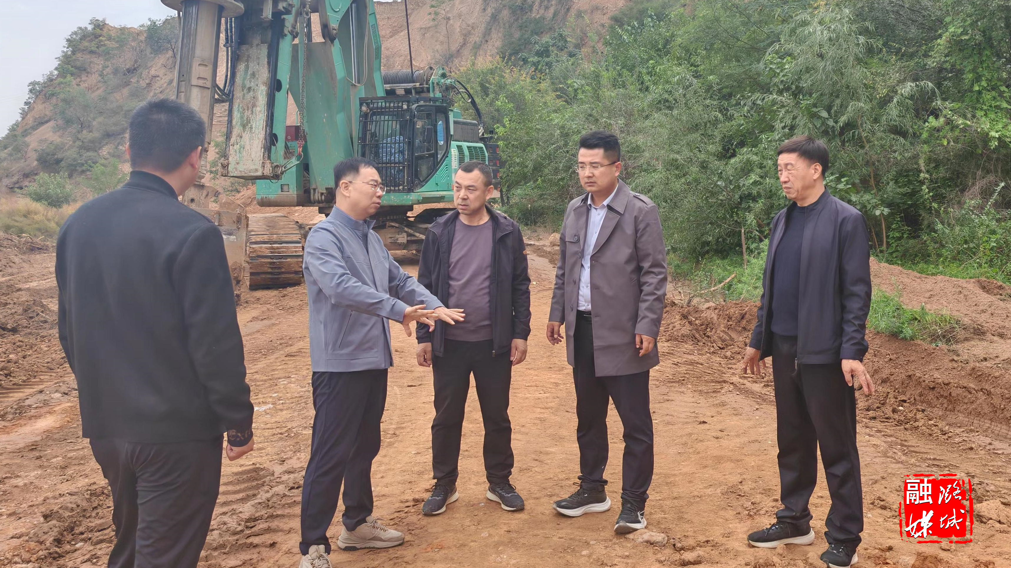 ▲区交通运输局负责人在旅游公路店辛线施工现场,就假期期间施工安全、进度、质量进行督导检查。