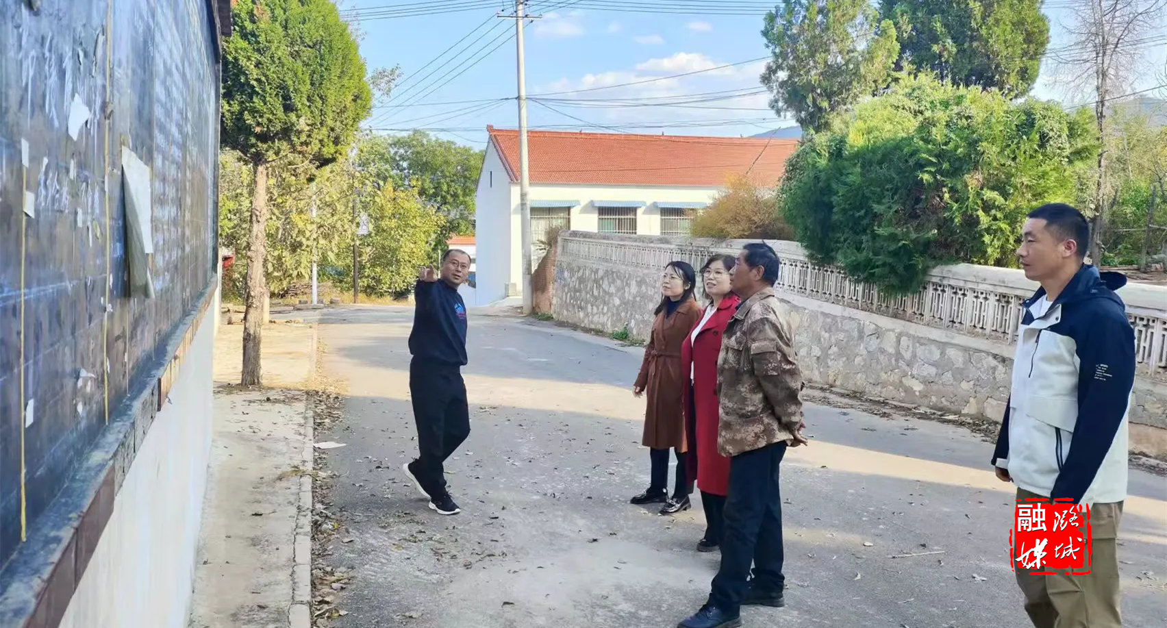 ★10月9日,辛安泉镇相关负责人在石梁村查看太行区第四军分区及32团石梁旧址保护提升项目建设情况。