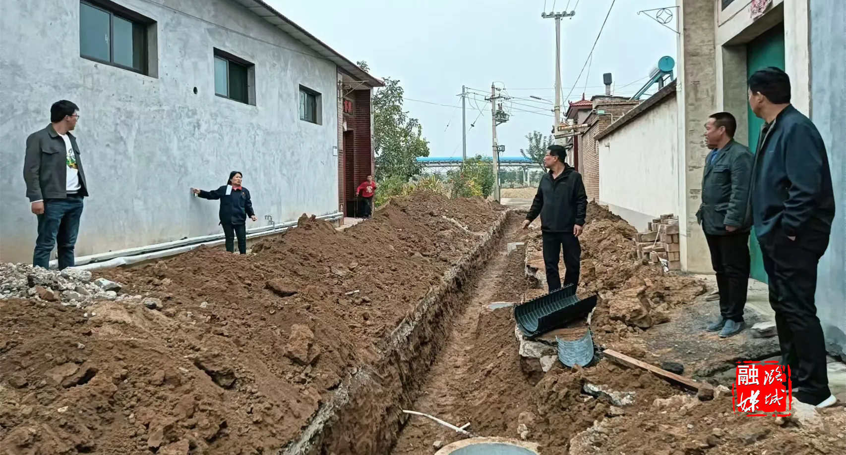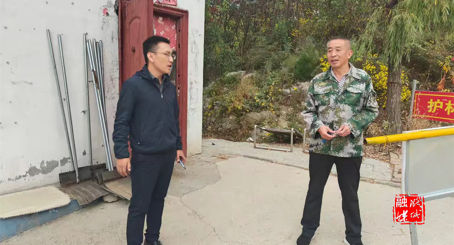 ▲史回镇工作人员到小沟村查看集中供热工程进展情况。