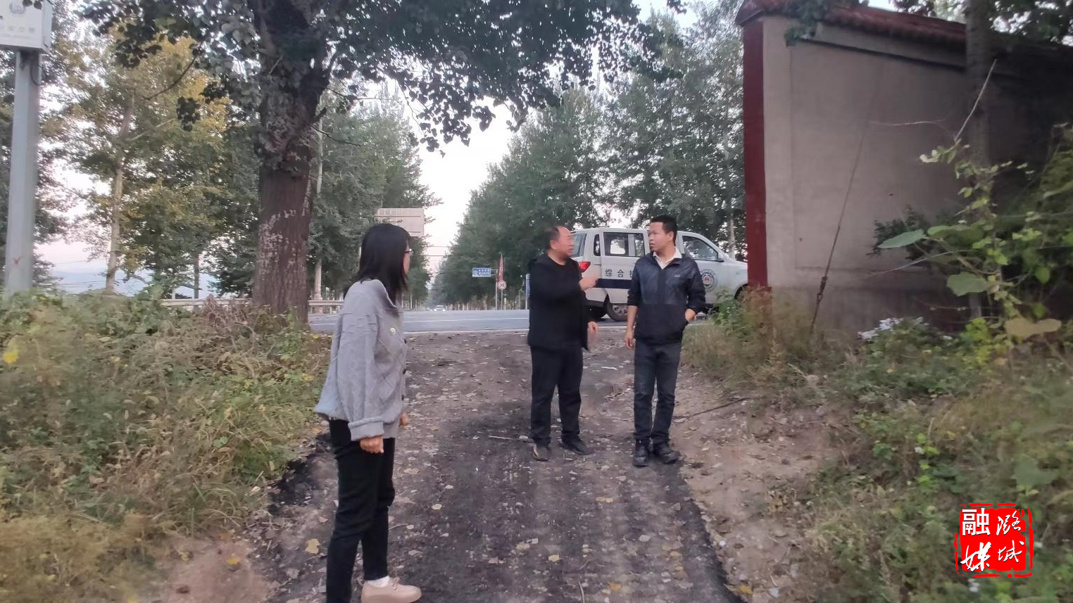 ▲辛安泉镇相关负责人到潞河村实地查看店辛线项目施工进展情况。