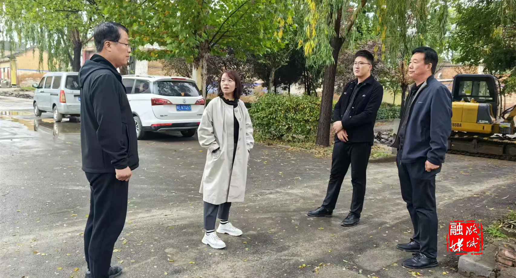 ▲史回镇相关负责人到小沟村查看农村供水、集中供暖、雨污分流工程建设情况。