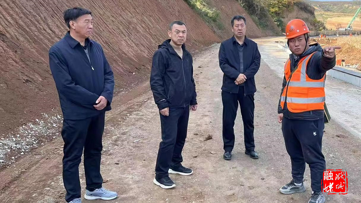 ▲区交通运输局负责人在店辛线、返桥线施工现场,就施工安全、进度、质量等情况进行督导检查。