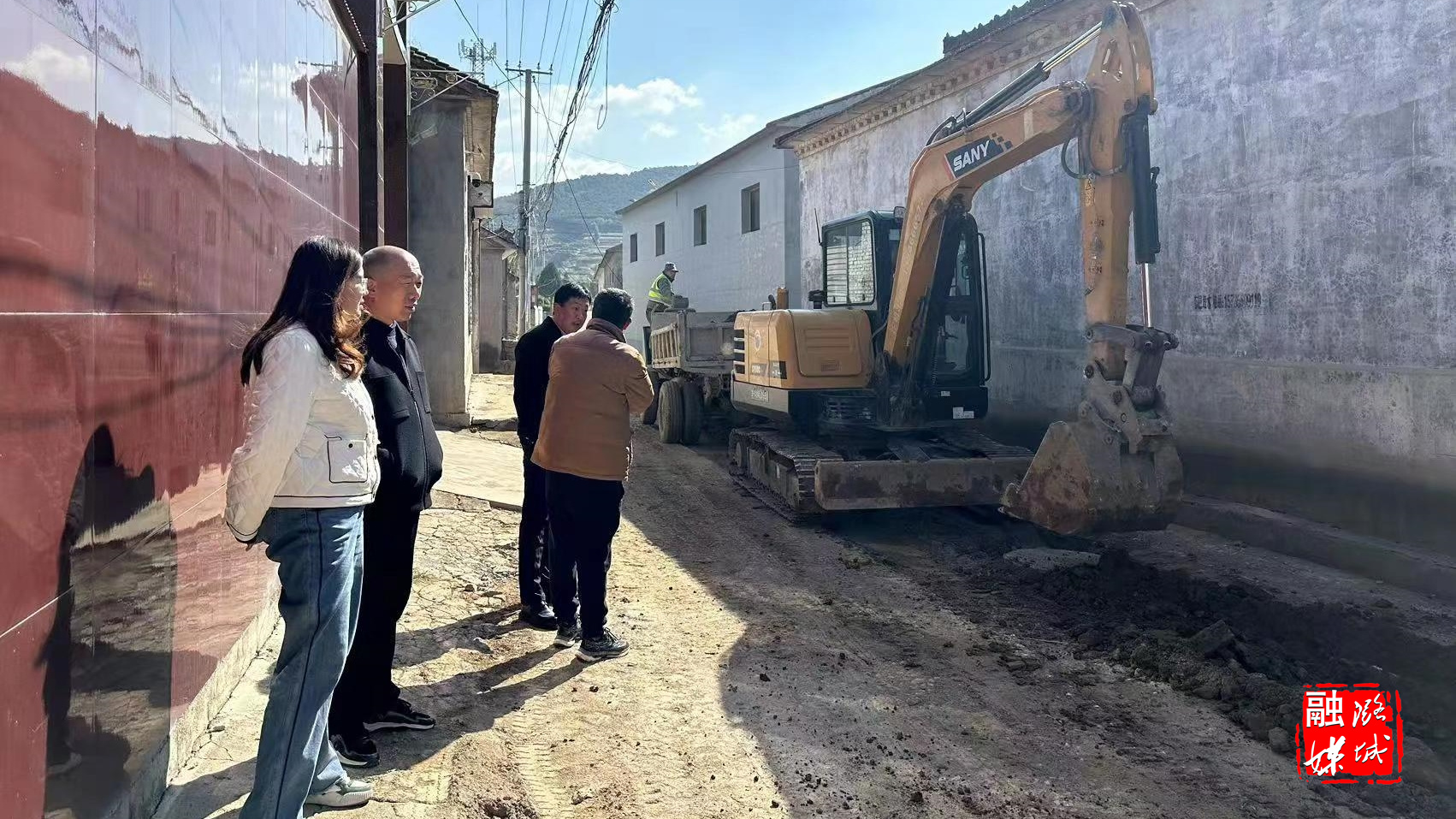 ▲史回镇相关负责人到垂阳村实地查看集中供热管网改造工程进展情况。