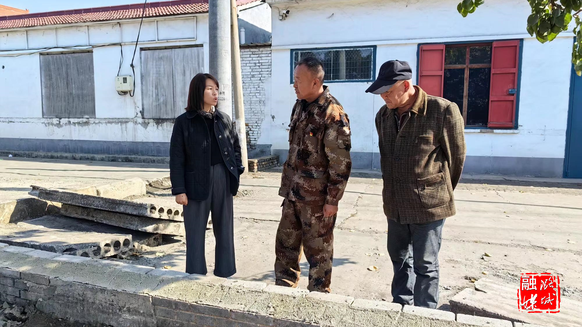 ▲史回镇相关负责人到王里堡村实地查看“一事一议”项目建设情况。