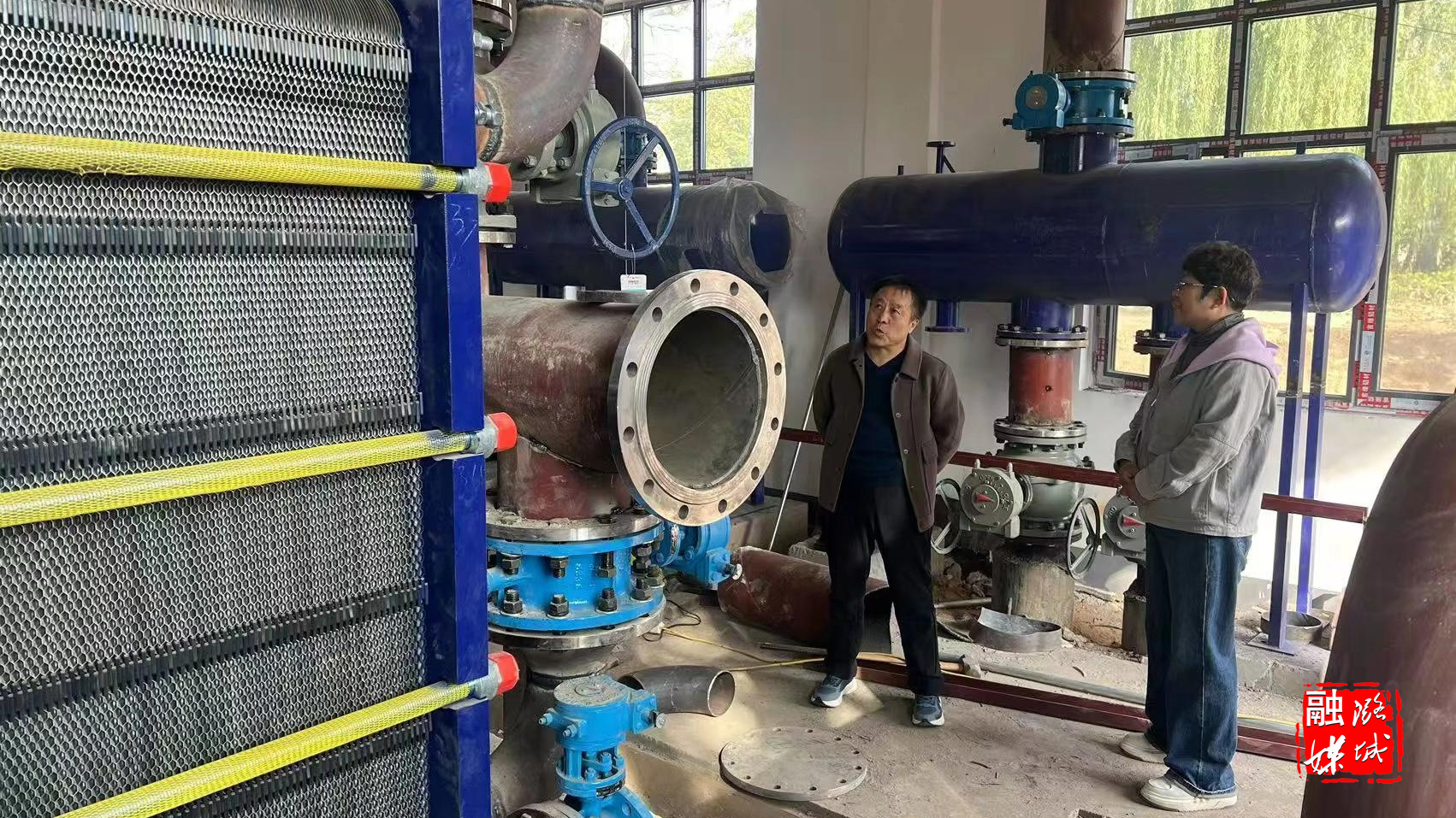 ▲店上镇工作人员到曹家沟村实地查看集中供热工程进展情况。