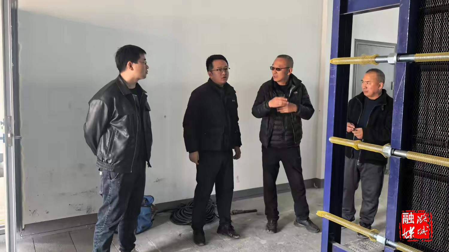 ▲微子镇相关负责人在微子村查看能源岛运行情况和集中供暖管网铺设进度。