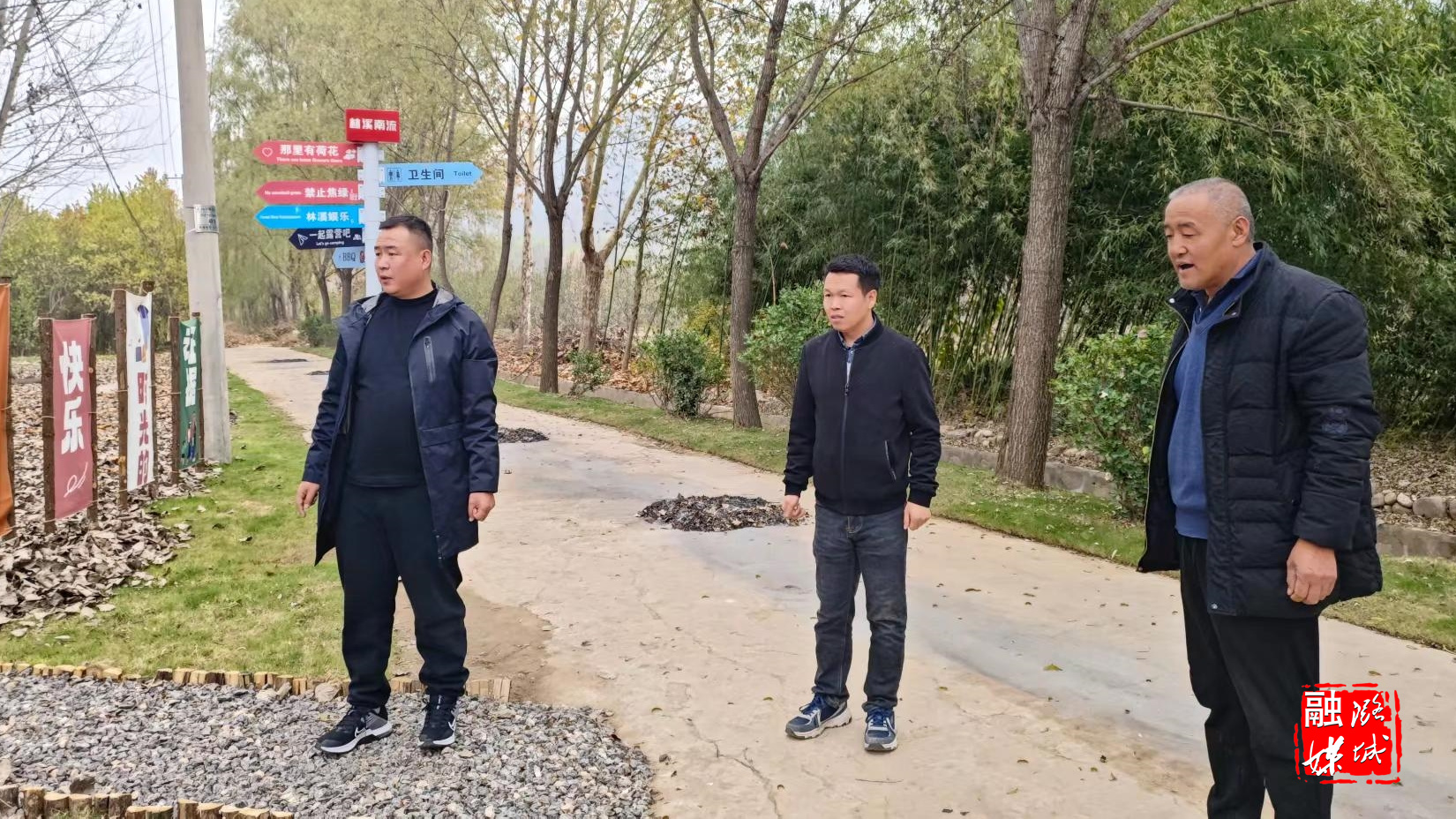 ★11月12日,辛安泉镇相关负责人在南流村观光农业示范园查看环境卫生整治工作。