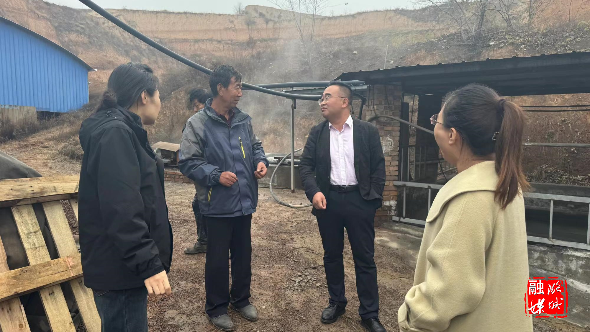 ★11月13日,黄牛蹄乡相关负责人在焱森环保建材有限公司检查企业安全生产与大气污染防治工作。