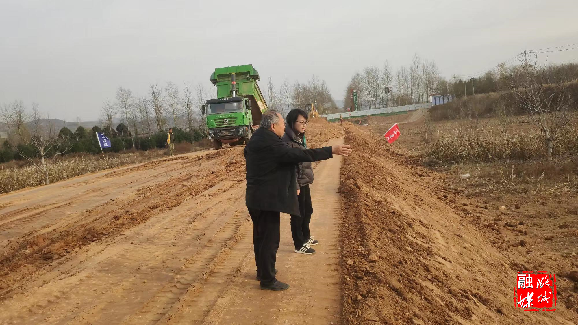 ▲辛安泉镇工作人员到店辛线项目施工现场查看项目建设进度。