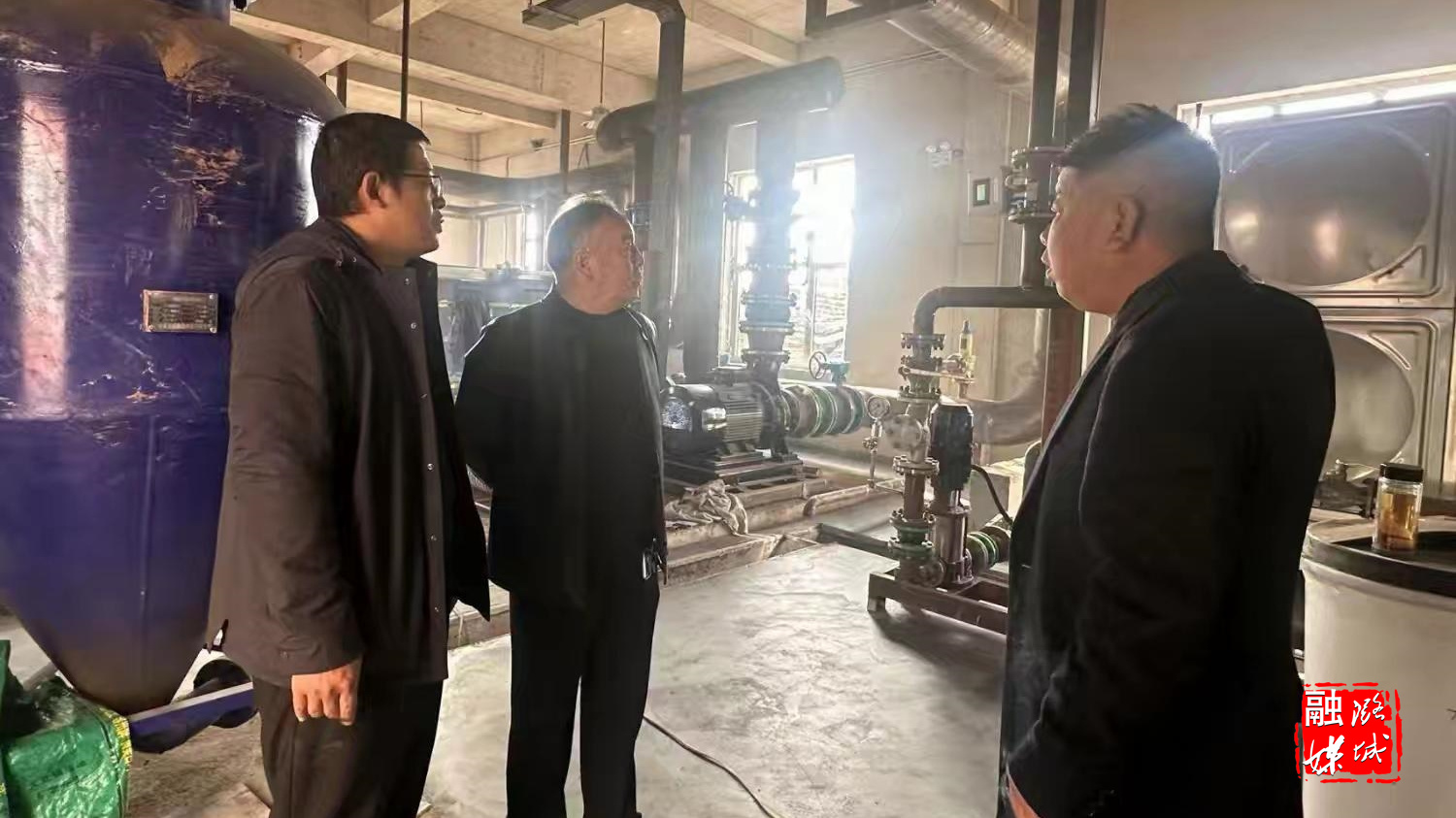 ★11月17日,微子镇相关负责人在微子村查看集中供暖管网运行和施工情况。