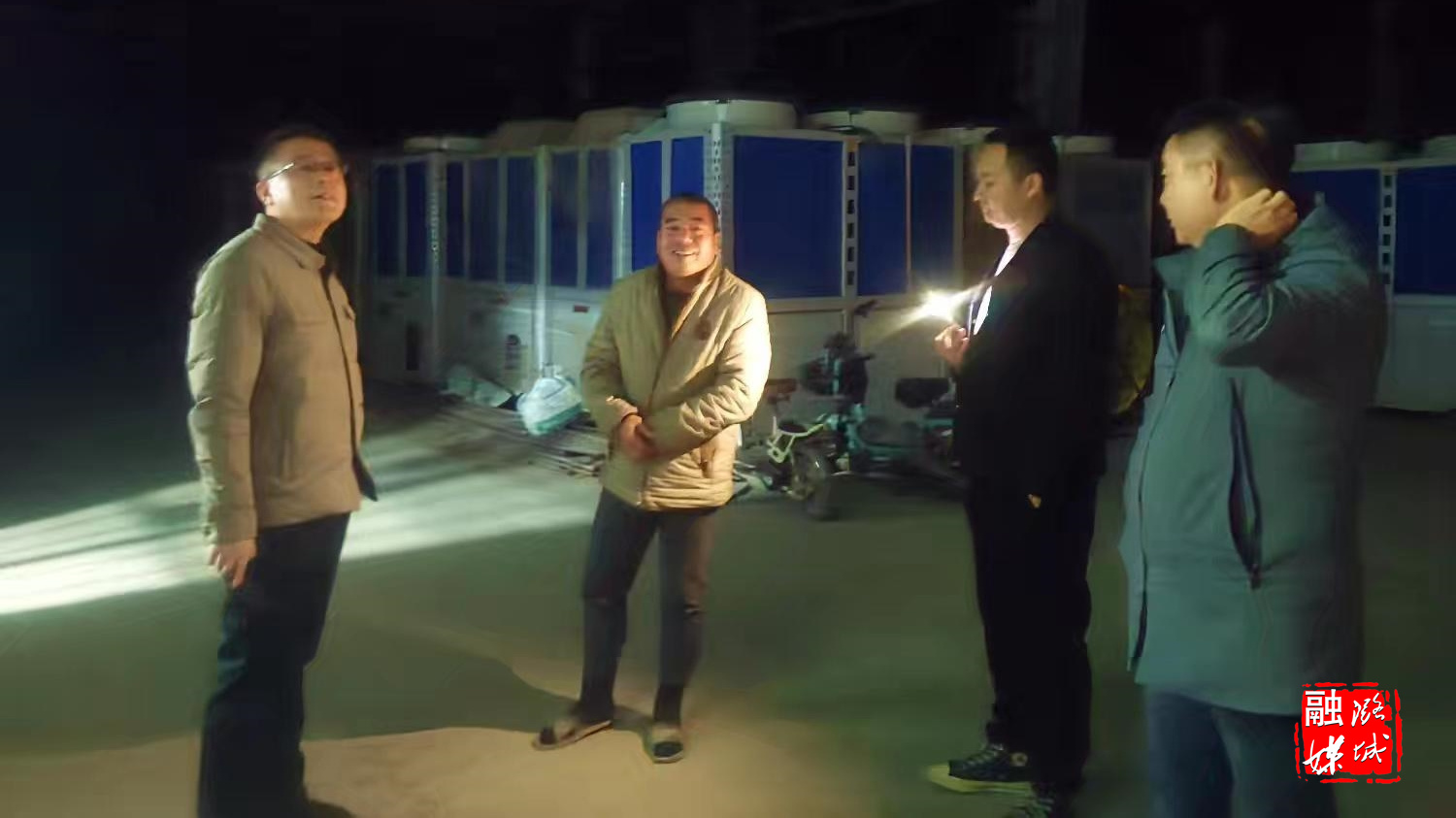 ★11月18日,微子镇负责人在能源岛查看集中供暖管网夜间运行情况。